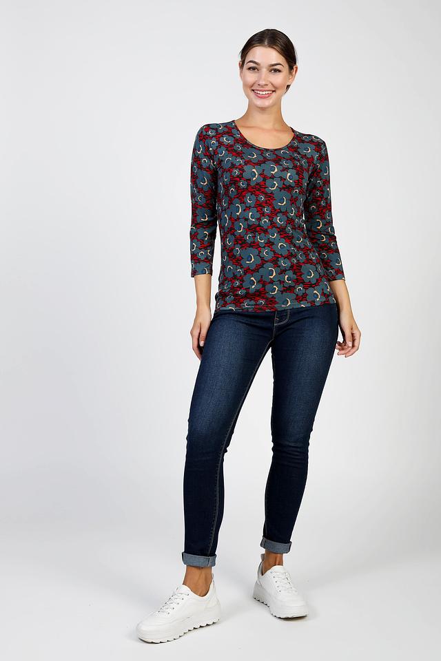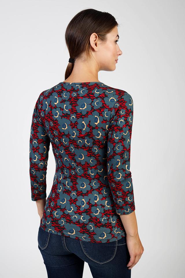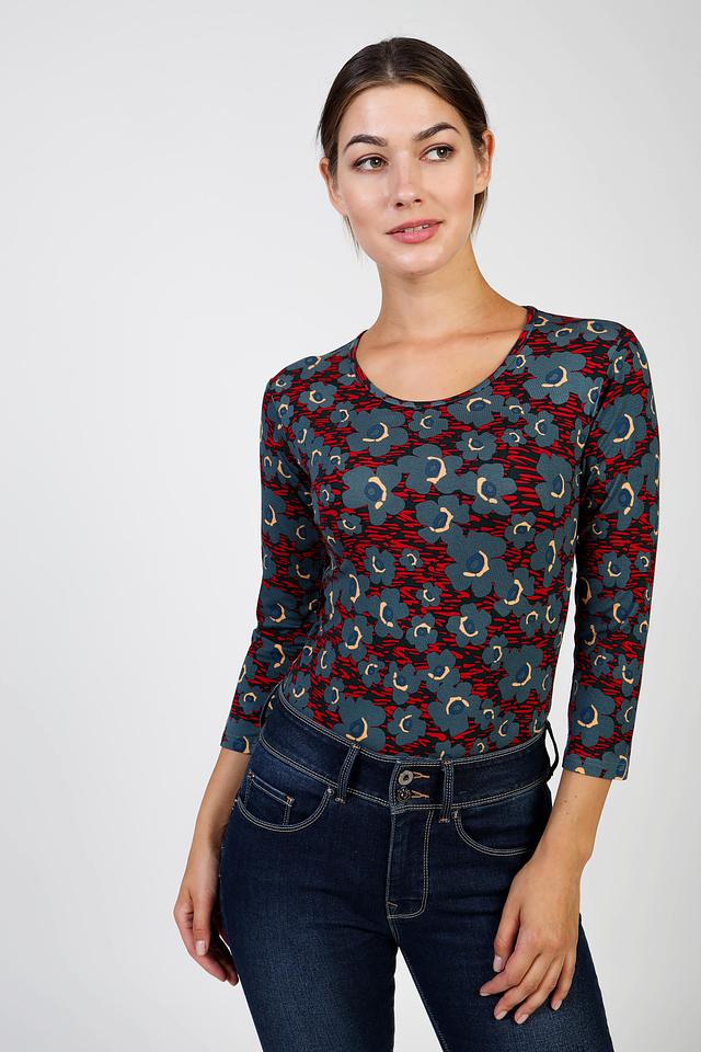 Женский лонгслив Pezzo темно-синего цвета с ярким цветочным принтом. Изготовлен из мягкой вискозы со спандексом для комфорта и свободы движений. Идеально подходит для создания повседневных образов. Состав: вискоза 96%, спандекс 4%