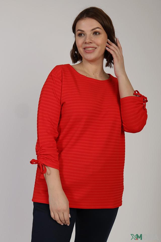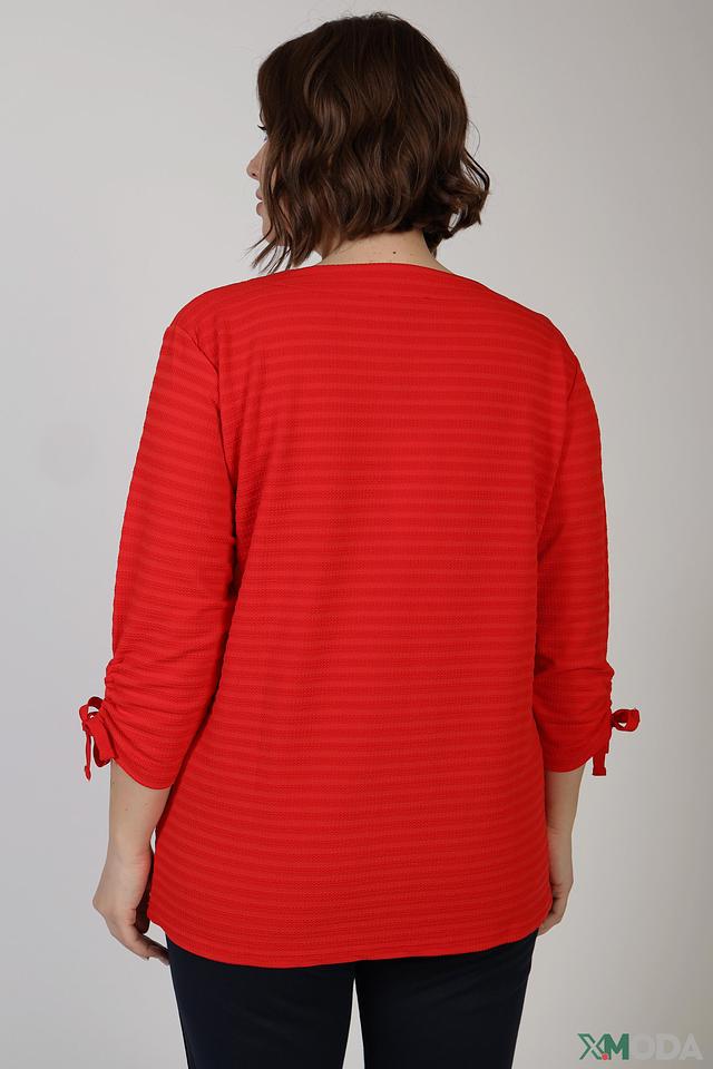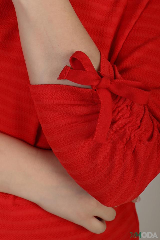 Красный пуловер Pezzo с рукавами 3/4 и завязками на манжетах. Изготовлен из мягкого и приятного к телу материала с текстурной поверхностью, станет отличным дополнением к вашему гардеробу. Состав: полиэстер 98%, спандекс 2%