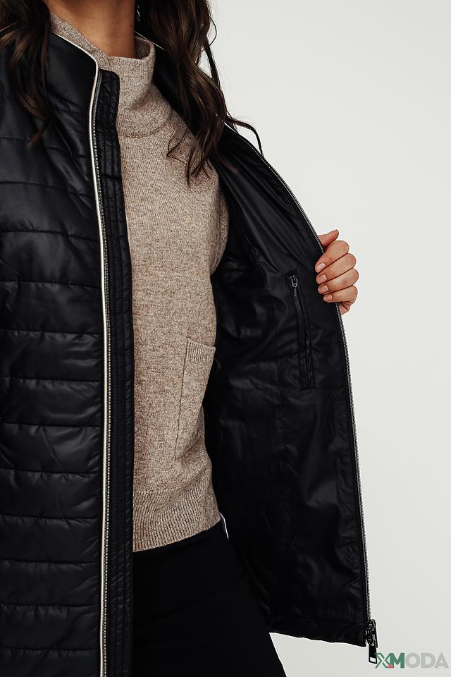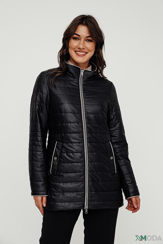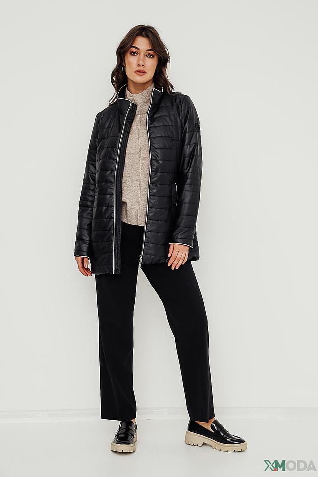 Жакет имеет удобную застежку-молнию, воротник-стойку с контрастной белой отделкой и боковые карманы. Модель прекрасно сочетается с джинсами, брюками и юбками, создавая стильные и комфортные образы.