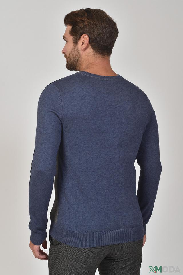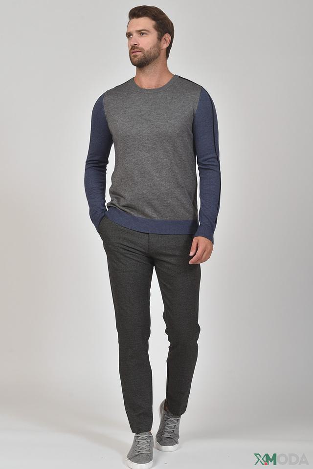 Мужской джемпер Pezzo серо-синего цвета с контрастными рукавами. Изготовлен из мягкой вискозы с добавлением шерсти и полиамида для комфорта и долговечности. Состав: вискоза 55%, шерсть 23%, полиамид 22%