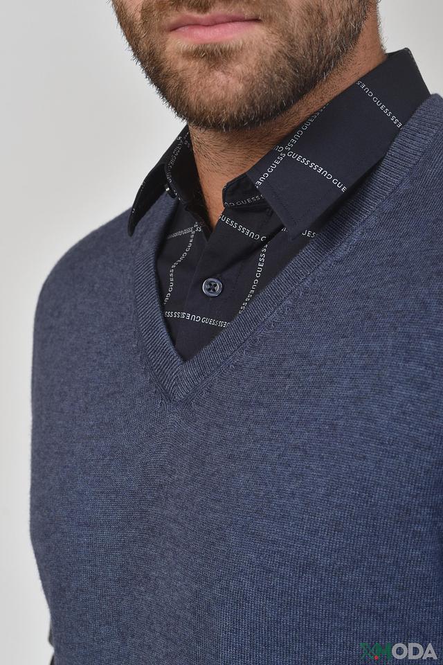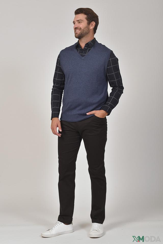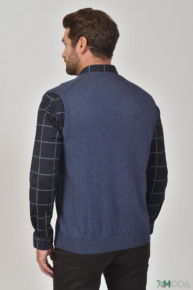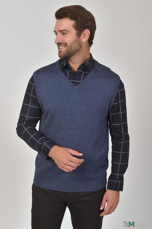 Мужской жилет Pezzo синего цвета с V-образным вырезом – стильное дополнение к вашему гардеробу. Изготовлен из мягкой и приятной к телу смеси вискозы, шерсти и полиамида, обеспечивающей комфорт в носке. Состав: вискоза 55%, шерсть 23%, полиамид 22%