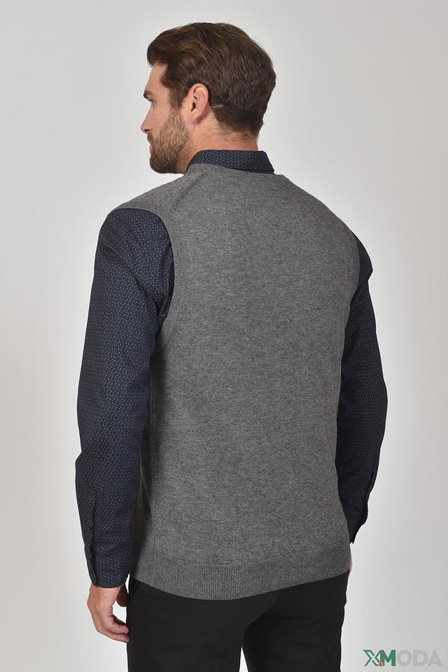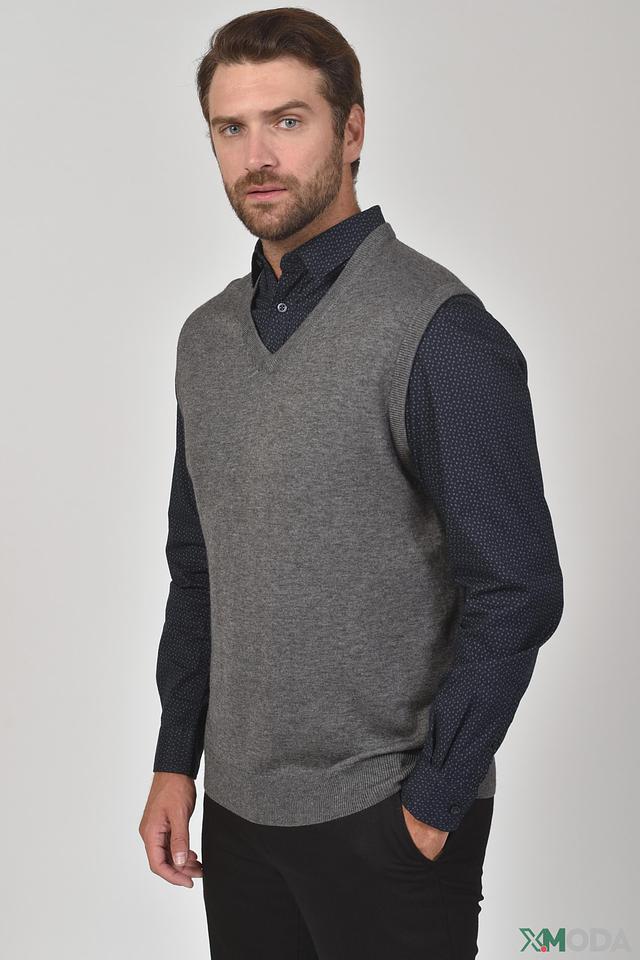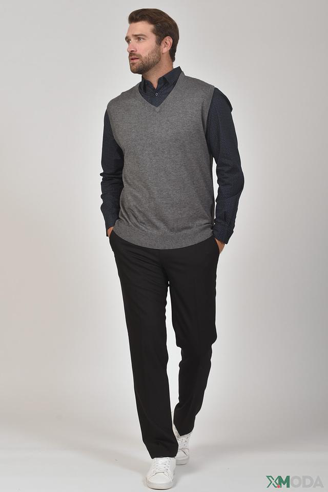 Жилет имеет серый цвет с меланжевой текстурой, что придает ему благородный и сдержанный вид. Он отлично сочетается с рубашками, футболками и другими элементами гардероба, позволяя создавать разнообразные образы.