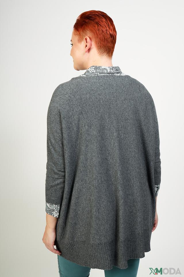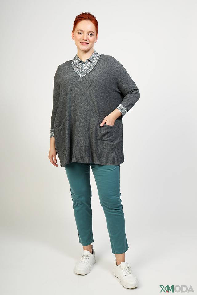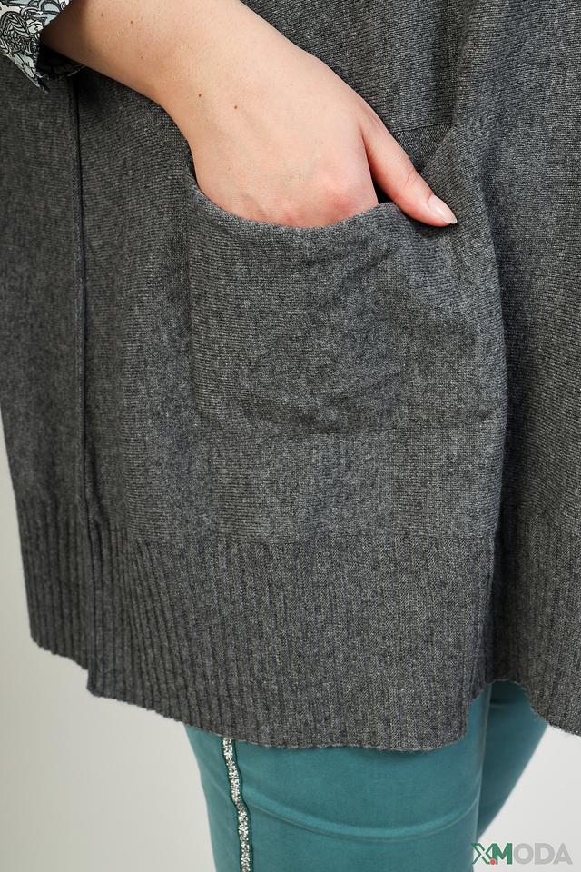 V-образный вырез горловины делает образ более женственным и позволяет сочетать пуловер с различными блузками и топами. Накладные карманы добавляют функциональности и непринужденности.