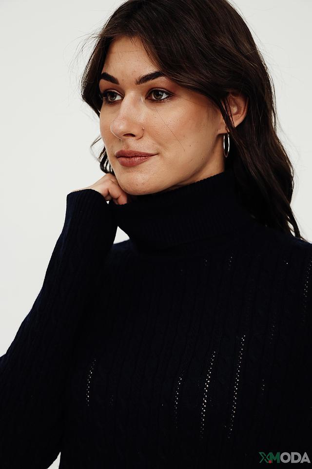 Особенностью данной модели является рельефный узор в виде кос, который придает ей элегантный и изысканный вид. Высокий воротник обеспечивает дополнительное тепло и защиту от холода. Водолазку можно сочетать с джинсами, брюками, юбками или носить под пиджак или пальто.