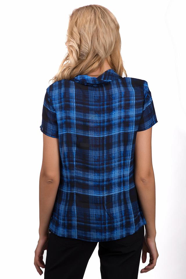 Синяя блуза Pezzo с короткими рукавами и воротником-стойкой выполнена в классическую клетку. Изделие из полиэстера обеспечит комфорт и удобство в носке. Состав: полиэстер 100%