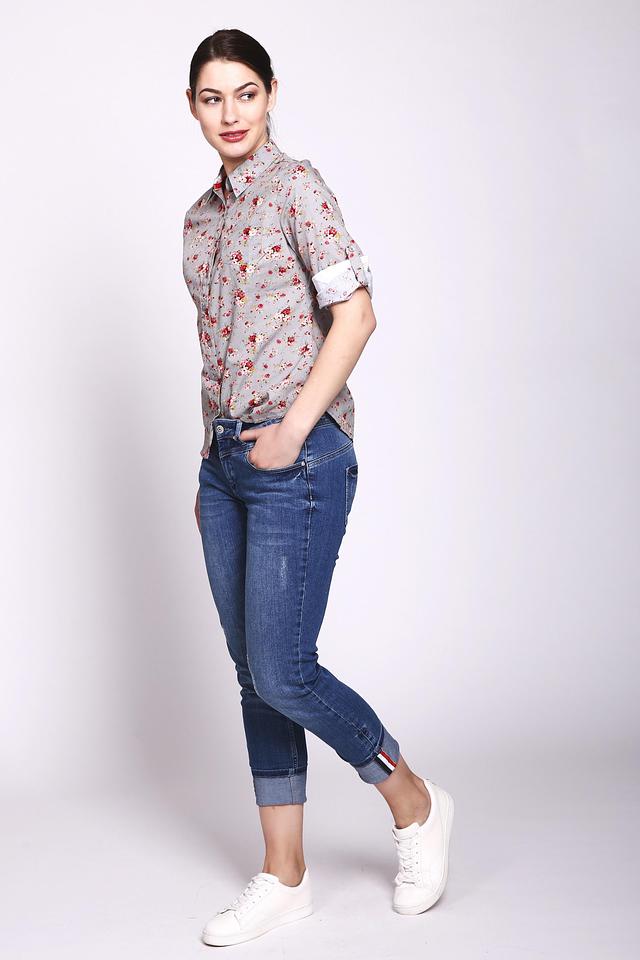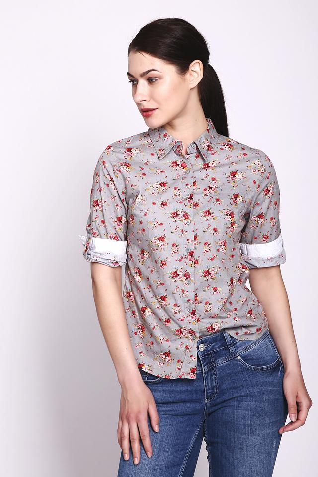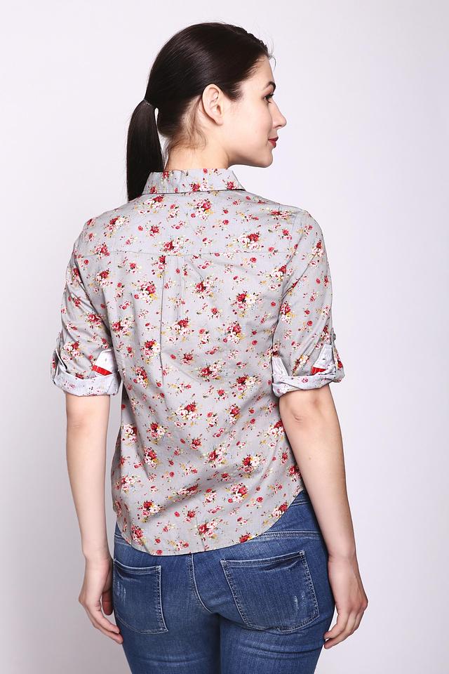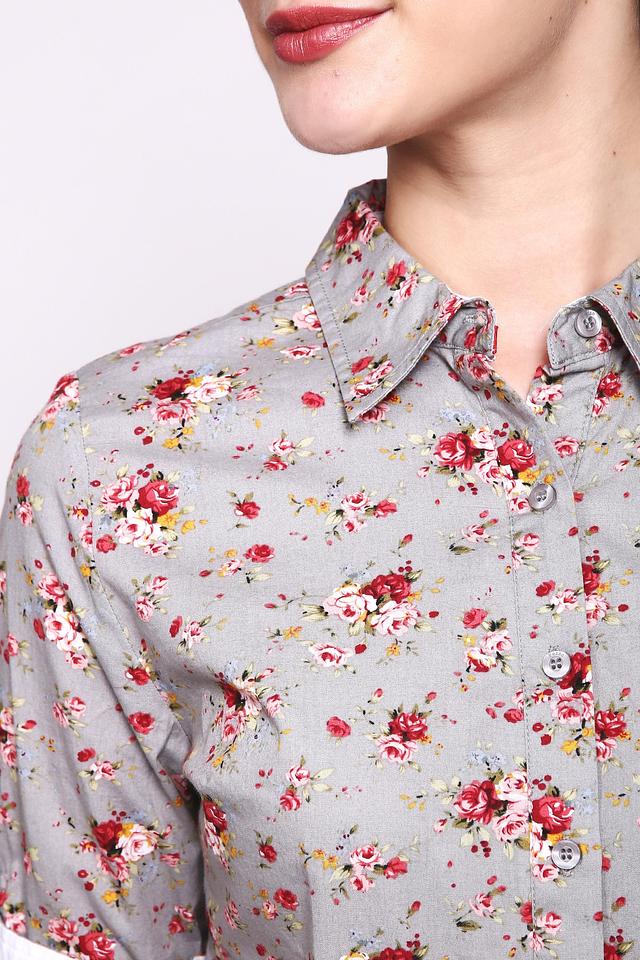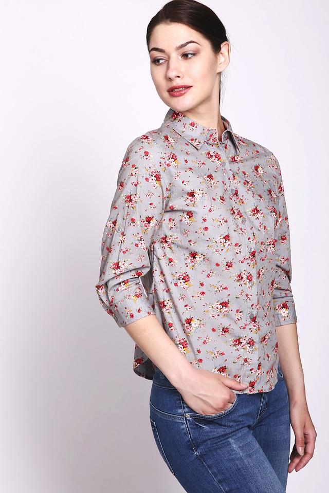 Особенностью этой модели является яркий цветочный принт, который придает блузе легкость и свежесть. Преобладающий серый цвет служит отличным фоном для нежных красных и розовых цветов, создавая гармоничное сочетание. Блуза идеально сочетается с джинсами, брюками или юбками, позволяя создавать разнообразные стильные образы.