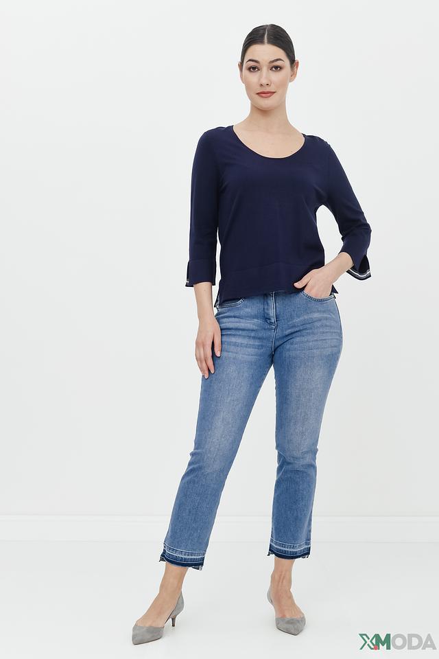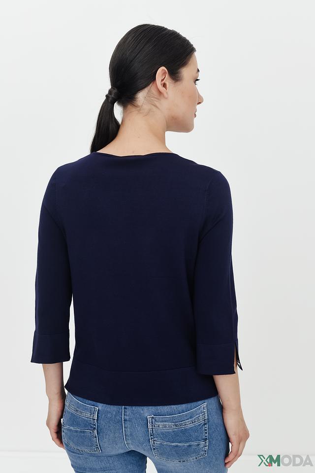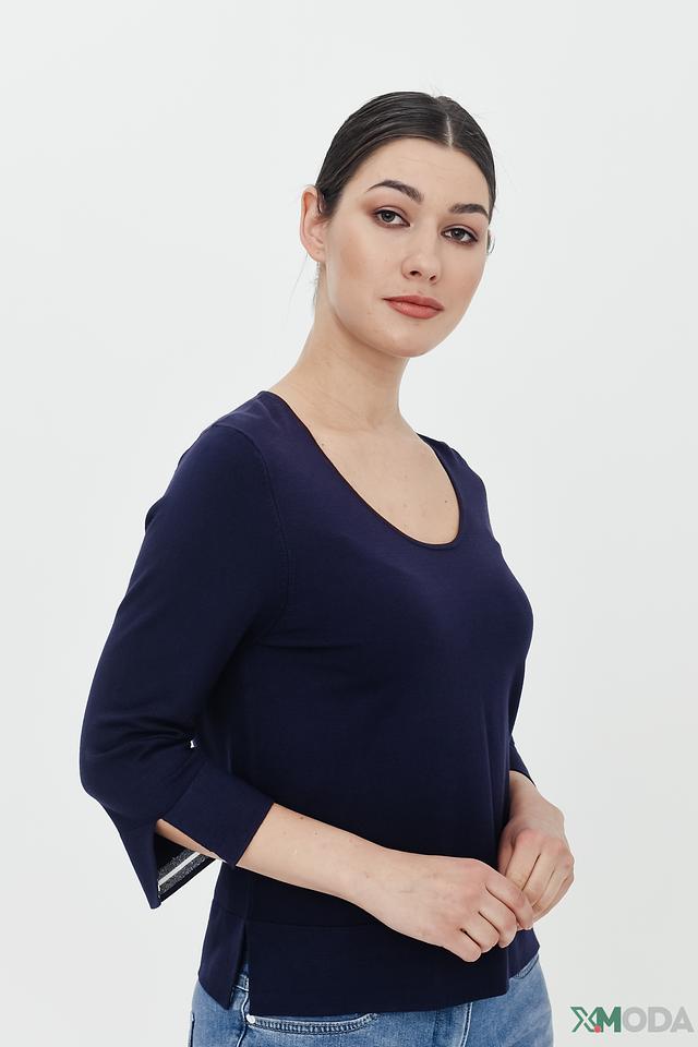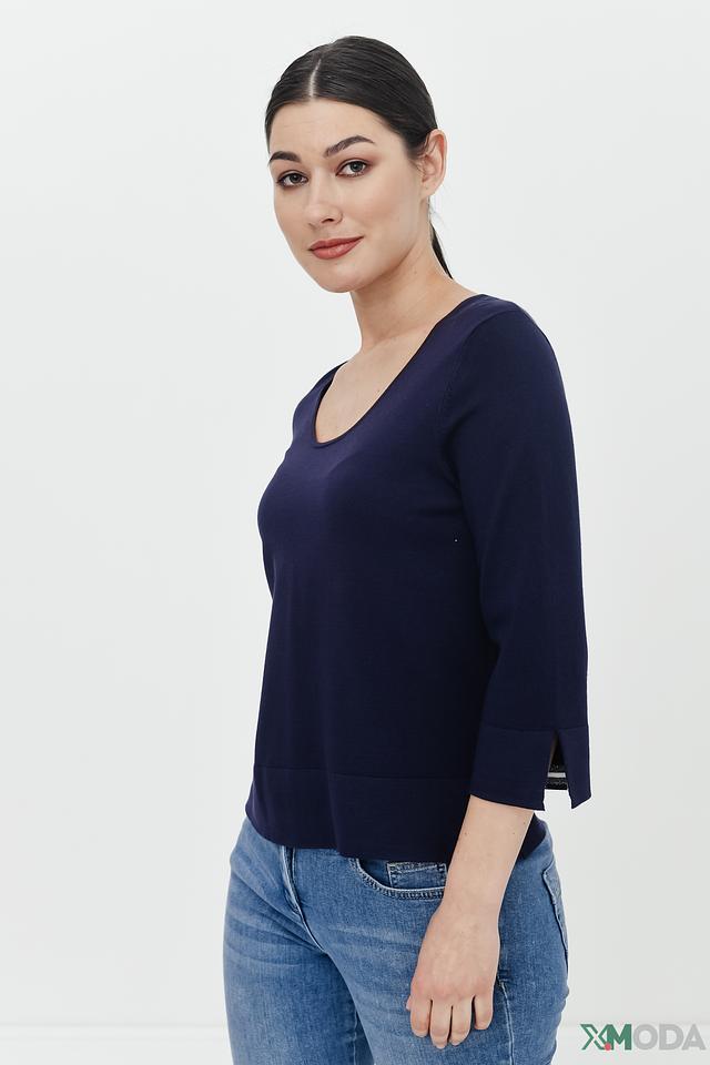 Синий пуловер Pezzo с рукавами 3/4 и разрезами по бокам. Изготовлен из мягкой вискозы с добавлением нейлона для большей эластичности. Стильный и комфортный выбор для повседневного образа. Состав: вискоза 80%, нейлон 20%