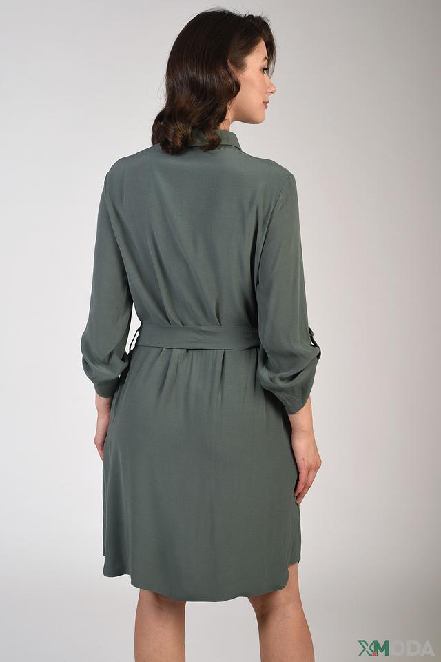 Оливковый цвет платья делает его универсальным и подходящим для различных случаев. Оно легко сочетается с обувью и аксессуарами разных стилей. Платье идеально подойдет для создания повседневных, деловых или вечерних образов.