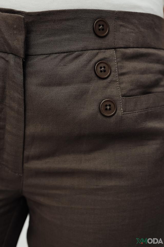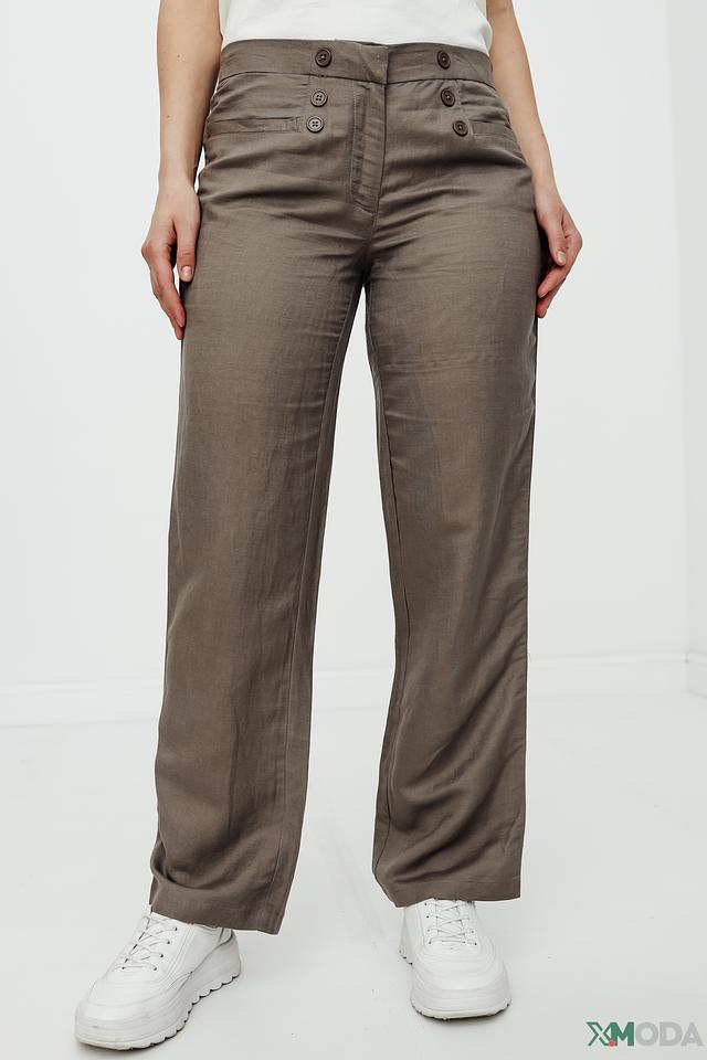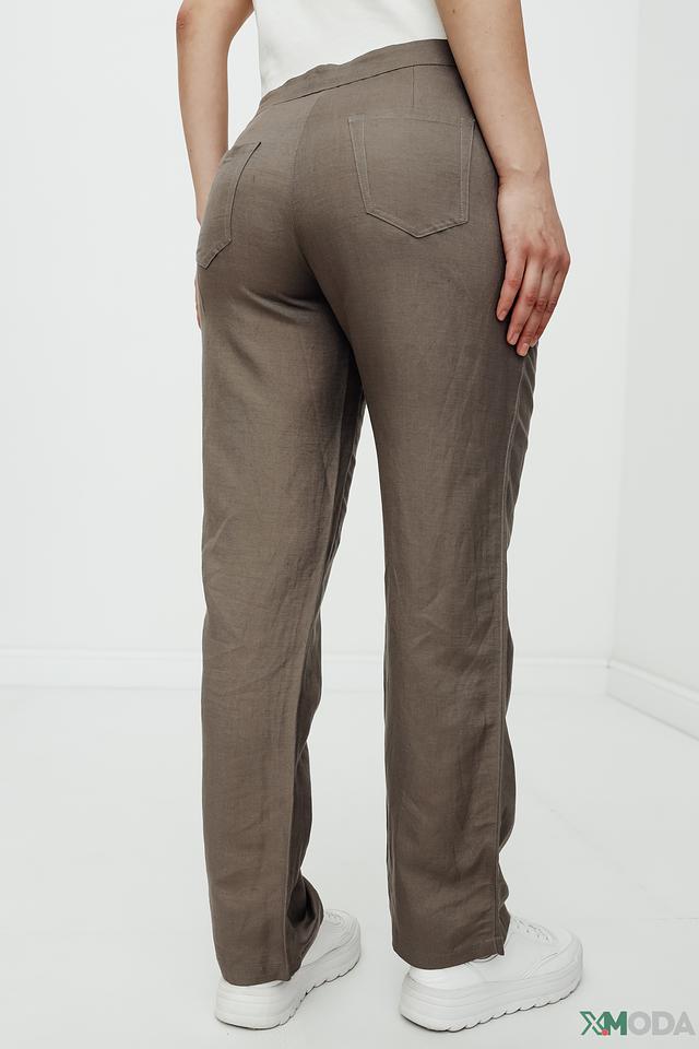 Состав ткани – 55% лен и 45% вискоза. Лен обеспечивает воздухопроницаемость и прохладу, а вискоза – мягкость и приятные тактильные ощущения. Брюки идеально подходят для теплой погоды.