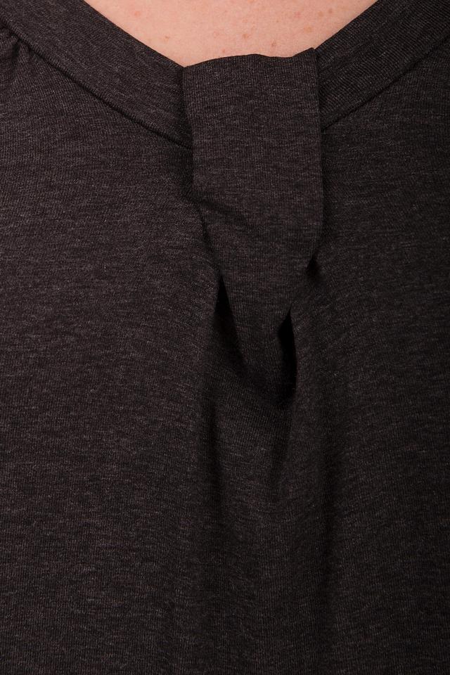 Стильная блуза Pezzo графитового цвета с V-образным вырезом и декоративной сборкой. Изготовлена из мягкой и приятной к телу вискозы с добавлением эластана для комфортной посадки. Состав: вискоза 95%, эластан 5%