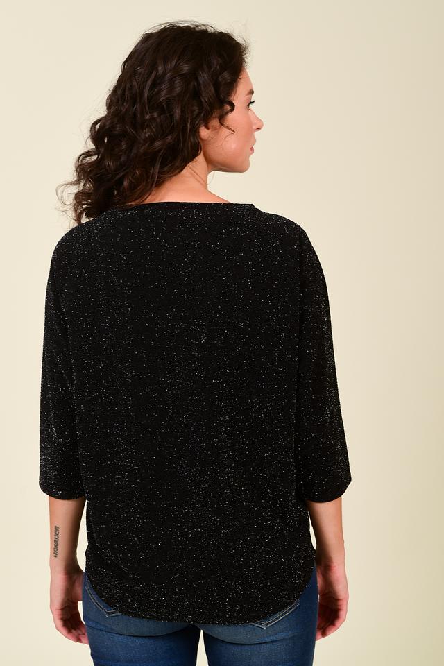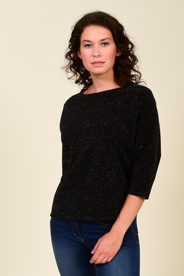 Чёрный пуловер Pezzo с деликатным мерцанием пайеток станет стильным дополнением к вашему гардеробу. Модель свободного кроя с рукавом 3/4 обеспечит комфорт и свободу движений. Состав: полиэстер 95%, эластан 5%