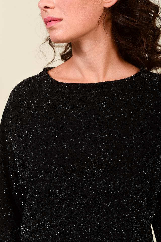 Этот стильный пуловер от Pezzo выполнен в классическом чёрном цвете и украшен деликатным мерцанием пайеток, что придает ему особый шарм.