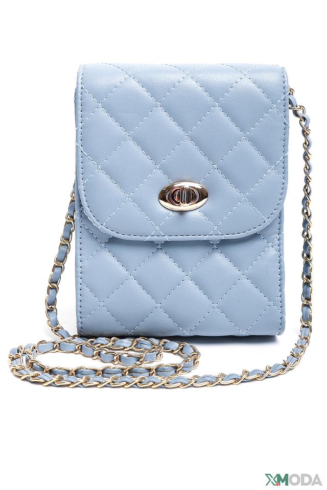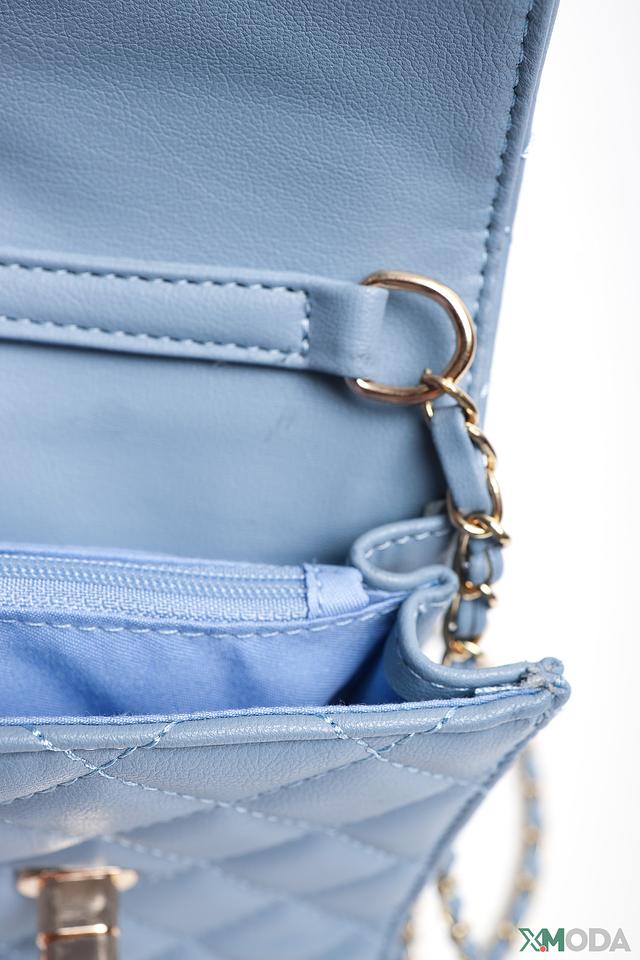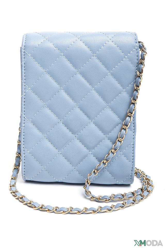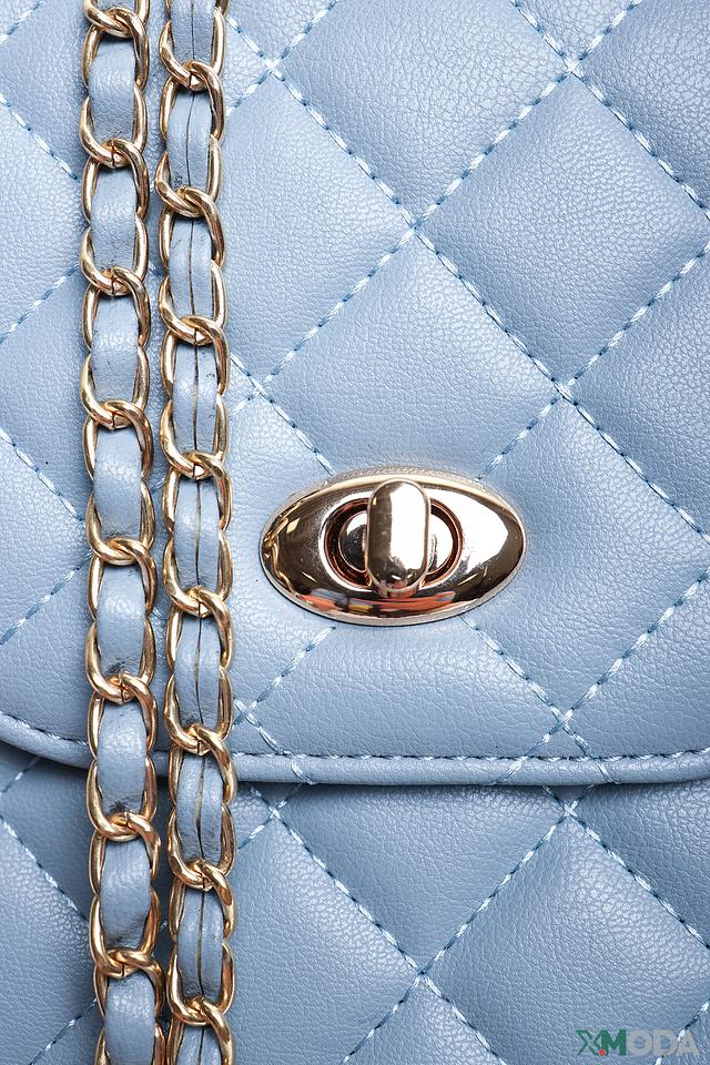 Сумка Pezzo голубого цвета – это стильный и практичный аксессуар. Компактный размер и удобный цепочный ремешок делают ее идеальным выбором для повседневной носки. Стеганая текстура и золотистая фурнитура придают сумке изысканный вид. Состав: полиуретан 100%, Состав_отделка металл 100%, Состав_подкладка полиэстер 100%