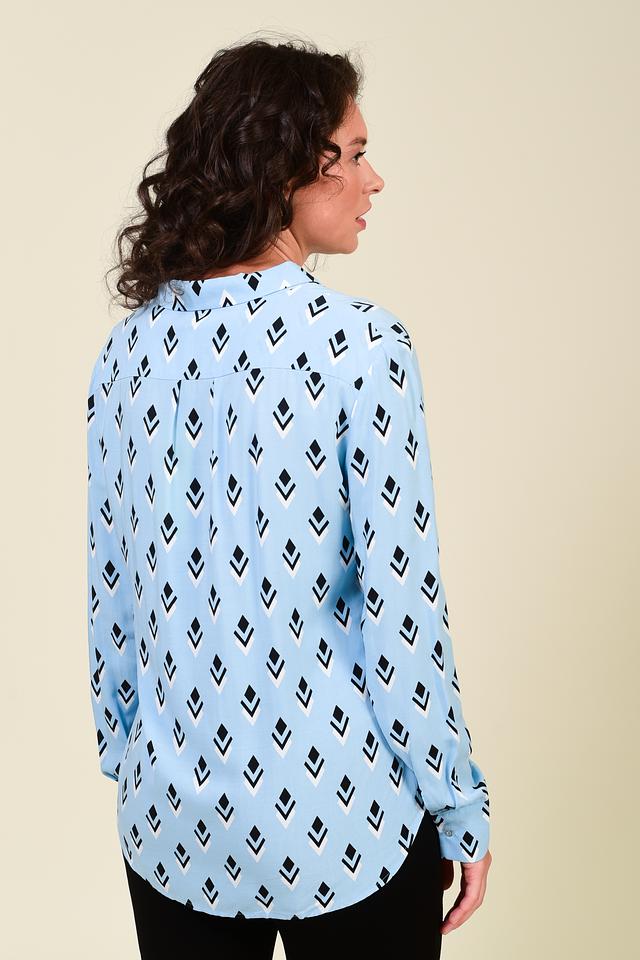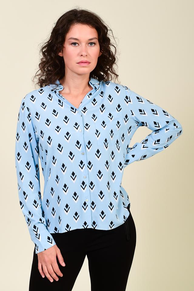 Голубая блуза Pezzo с оригинальным геометрическим принтом станет стильным дополнением вашего гардероба. Модель выполнена из лёгкой вискозы, что обеспечивает комфорт в носке и приятные ощущения на коже. Состав: вискоза 100%