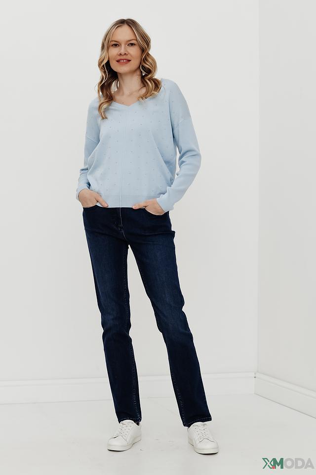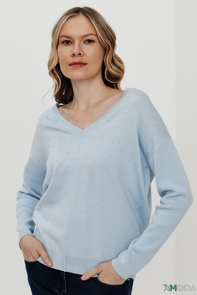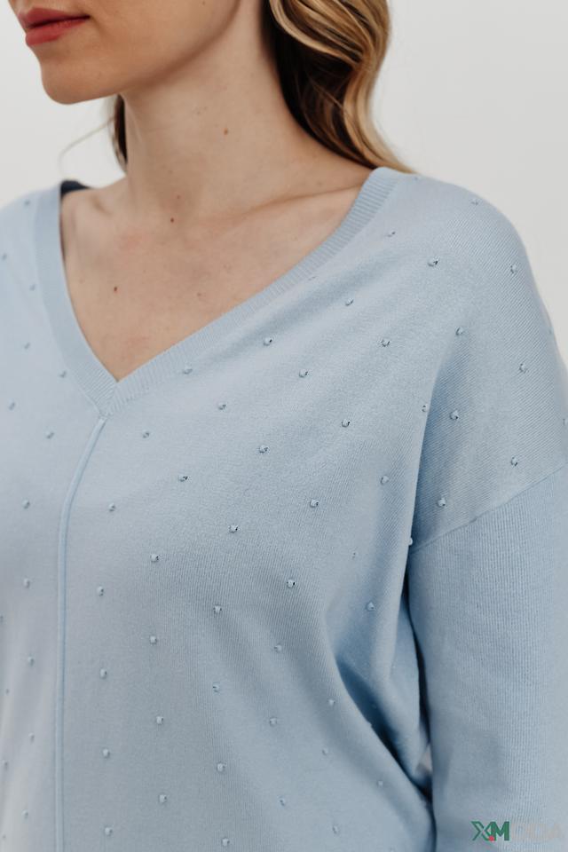 Пуловер Pezzo голубой с бусинами