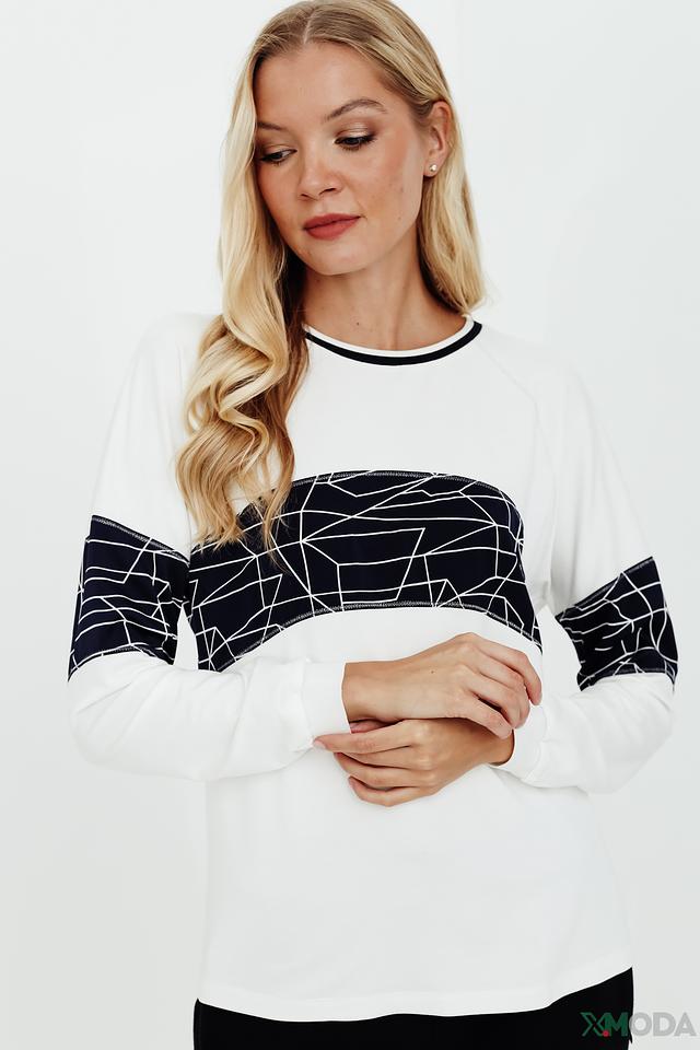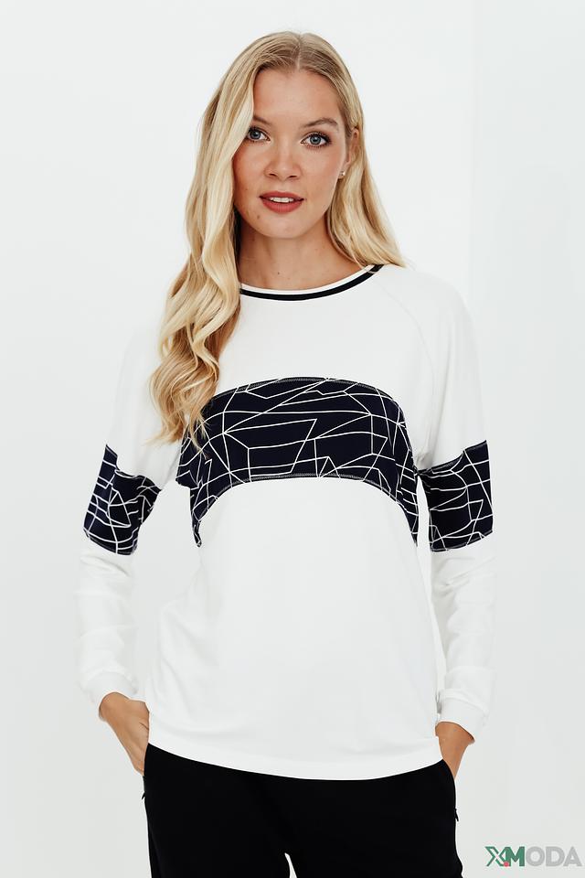 Белый пуловер Pezzo с оригинальным геометрическим принтом в чёрно-белой гамме станет стильным дополнением к вашему гардеробу. Модель выполнена из мягкого и приятного к телу трикотажа, обеспечивающего комфорт в течение дня. Состав: Состав_2 полиэстер 100%, модал 48%, вискоза 46%, эластан 6%