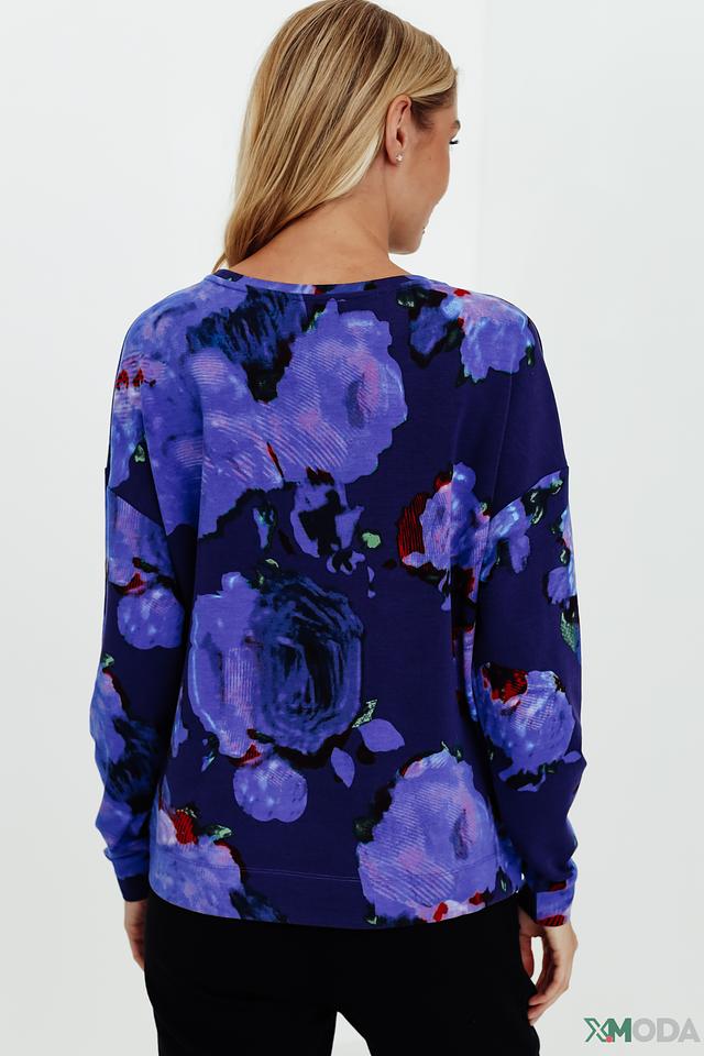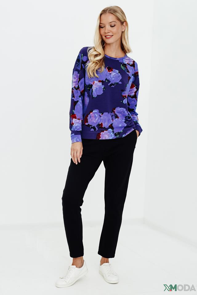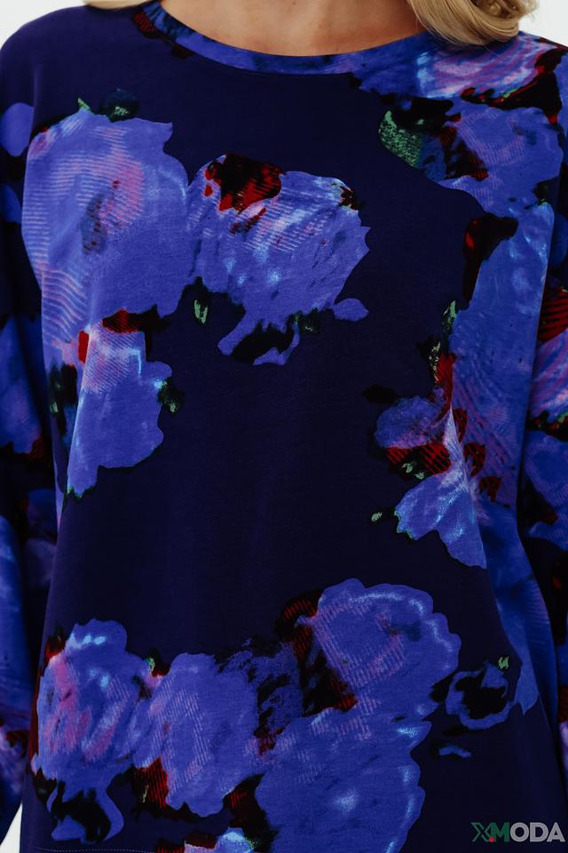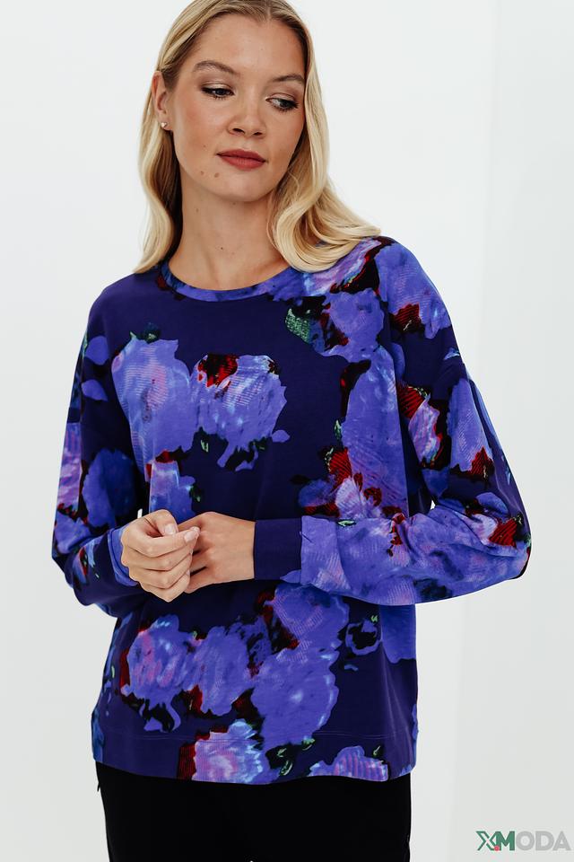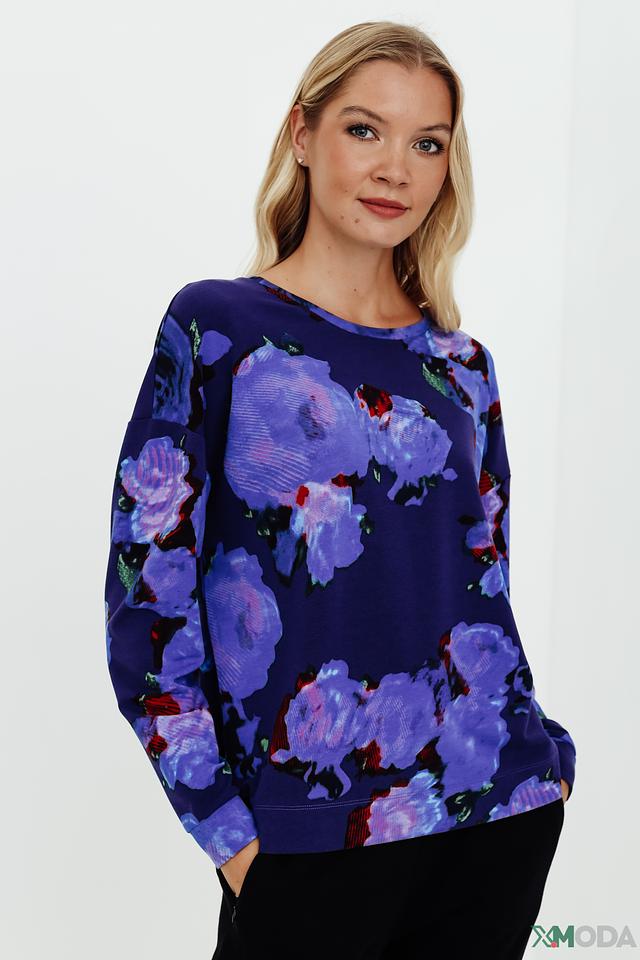 Женский пуловер Pezzo синего цвета с ярким цветочным принтом станет стильным дополнением к вашему гардеробу. Модель выполнена из мягкого и приятного к телу сочетания хлопка, модала и эластана, обеспечивая комфорт в носке. Состав: хлопок 47%, модал 45%, эластан 8%