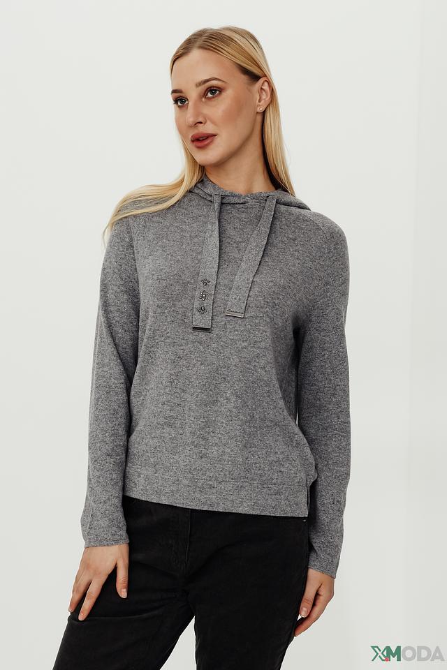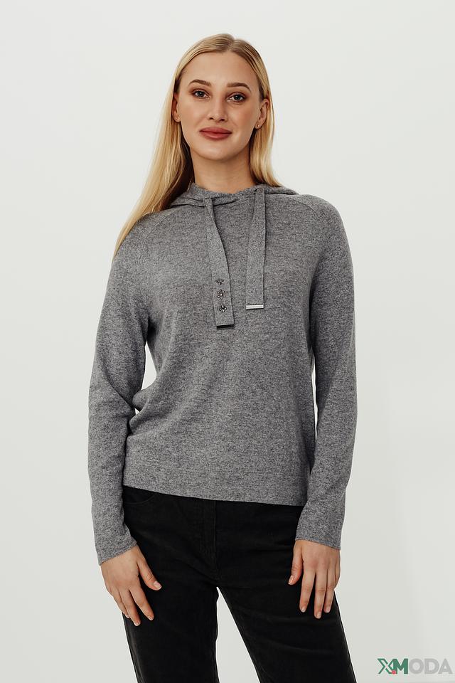 Серый пуловер Pezzo с капюшоном и декоративной отделкой – стильное и комфортное решение для повседневного гардероба. Изготовлен из мягкого трикотажа с добавлением шерсти и кашемира для тепла и уюта. Состав: вискоза 37%, хлопок 30%, нейлон 18%, шерсть 10%, кашемир 5%