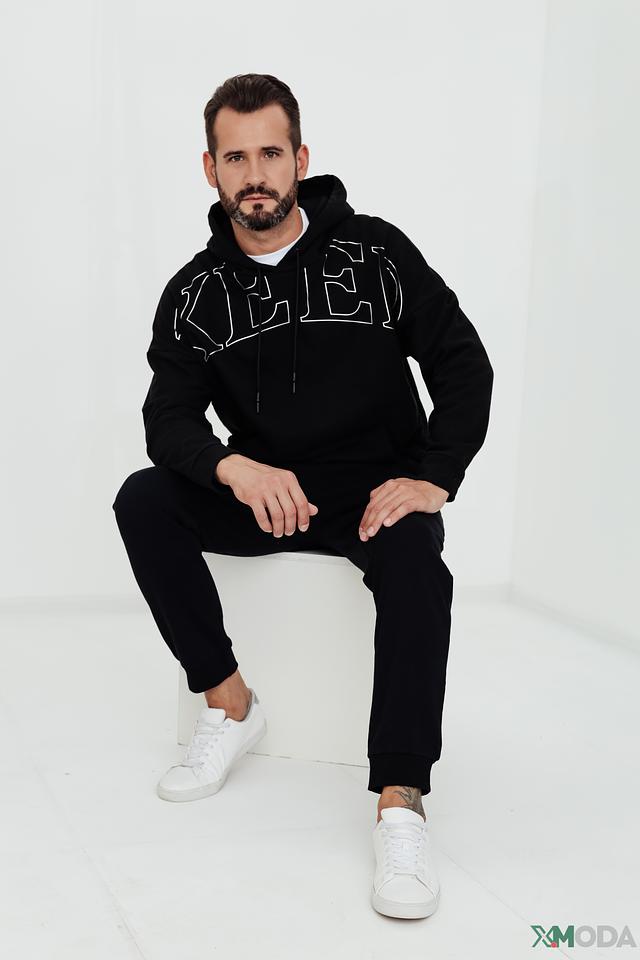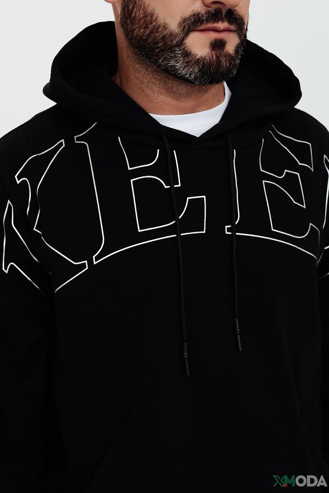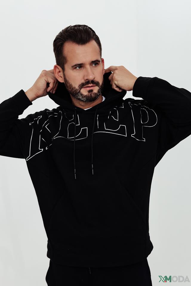 Толстовка имеет прямой крой, длинные рукава и удобный капюшон со шнурками. На груди расположена крупная белая надпись "KEEP", которая придает модели современный и стильный вид.
