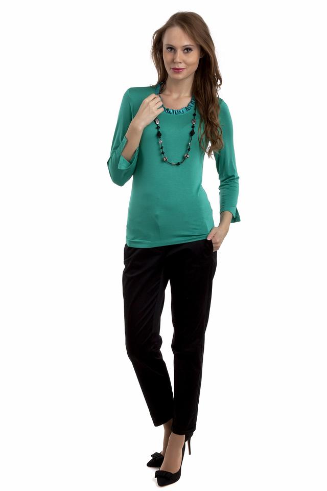 Изумрудный цвет блузы выглядит свежо и элегантно, легко сочетается с различными оттенками и позволяет создавать разнообразные образы – от повседневных до более нарядных. Блузу можно носить с брюками, юбками или джинсами.