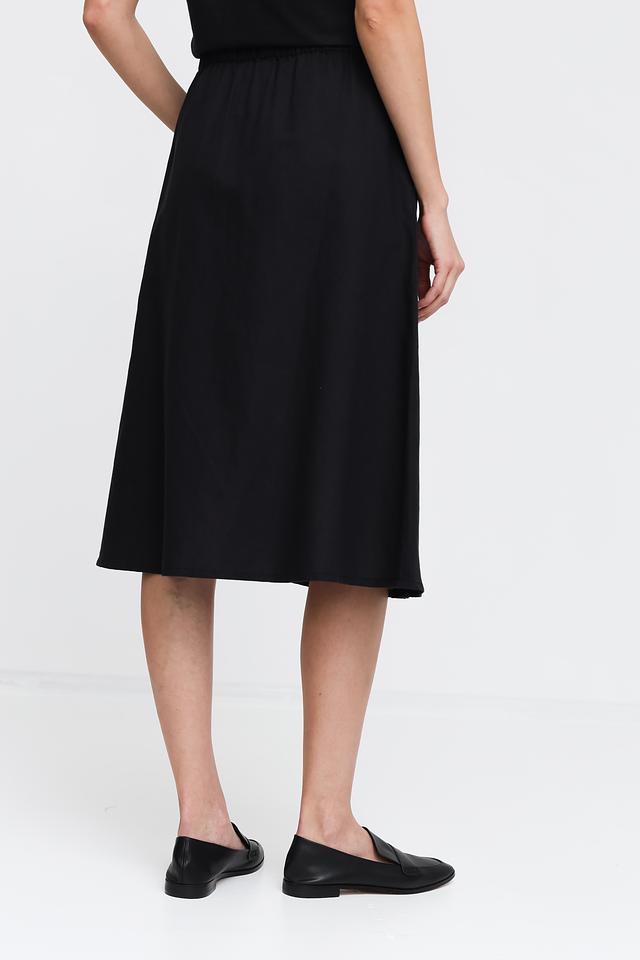 Чёрная юбка Pezzo – это стильная и комфортная модель длиной миди с эластичным поясом и кулиской. Изготовлена из натурального льна и хлопка, идеально подходит для создания повседневных образов. Состав: лен 55%, хлопок 45%