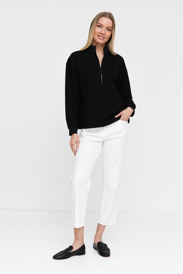 Пуловер имеет свободный крой, длинные рукава и короткую молнию на горловине. Благодаря этому он легко сочетается с различными стилями одежды – от повседневных джинсов до более элегантных юбок и брюк.