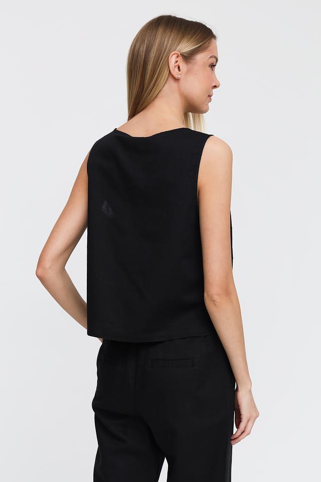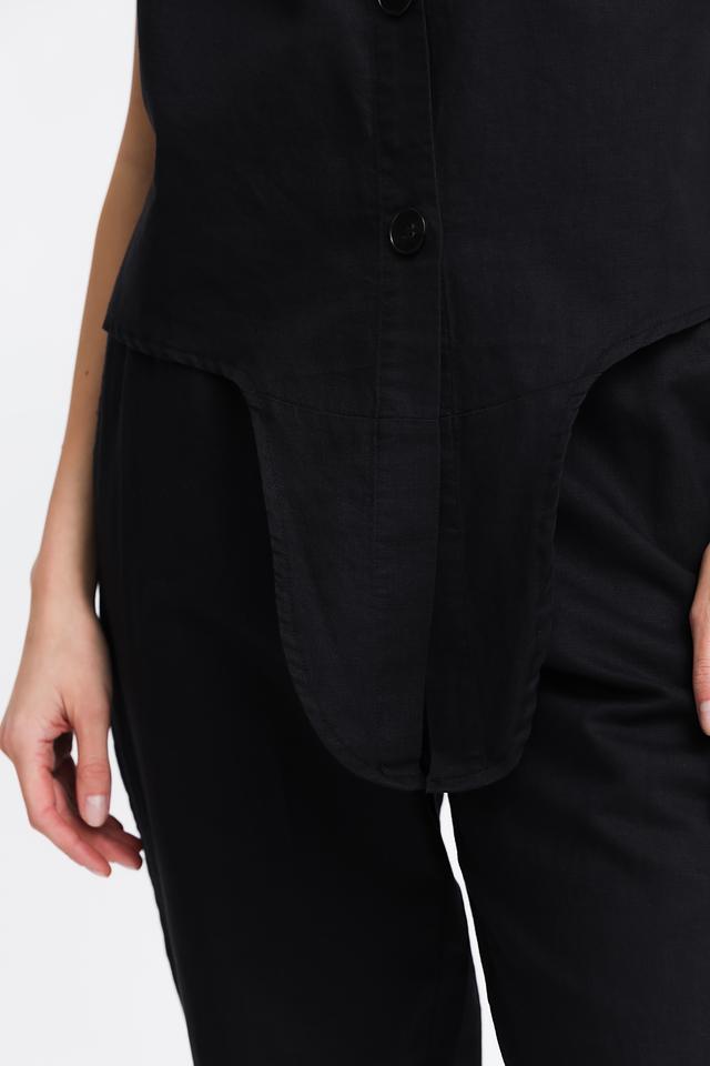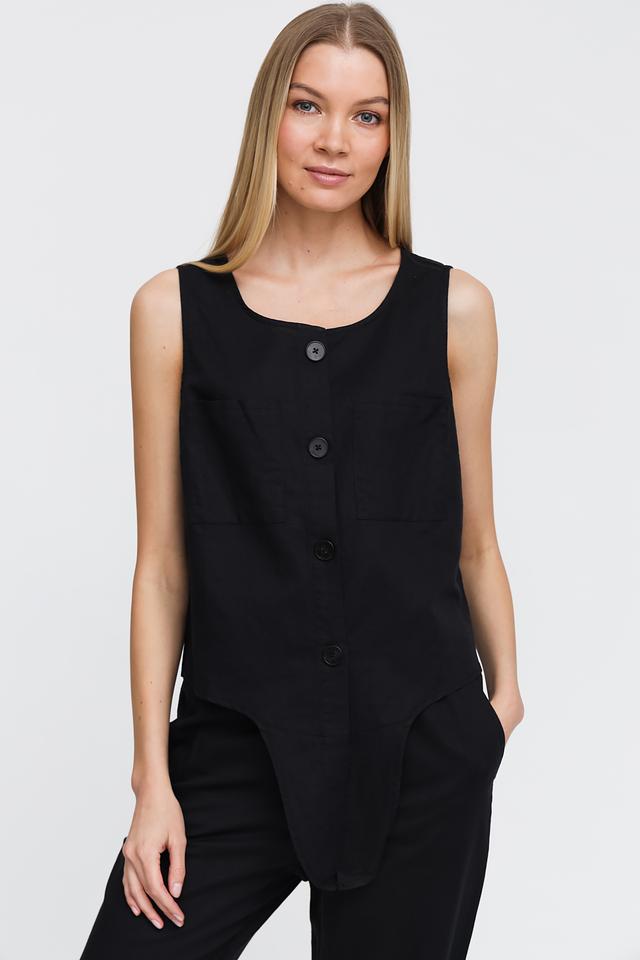 Чёрный топ Pezzo из льна и хлопка с застёжкой на пуговицы и асимметричным низом. Лёгкий и стильный, этот топ станет отличным дополнением к вашему гардеробу. Состав: лен 55%, хлопок 45%