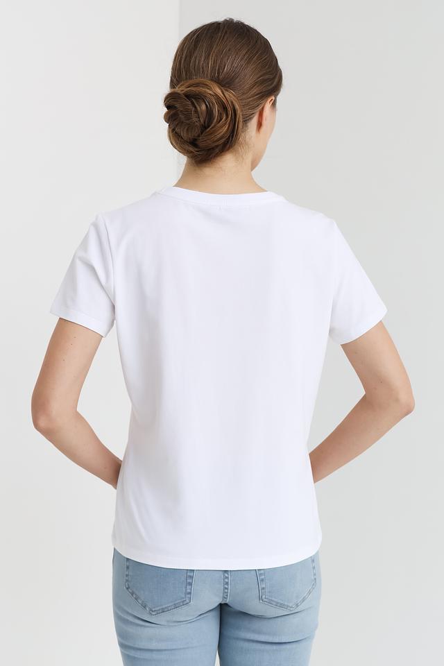 Состав ткани: 95% хлопок, 5% эластан. Эта футболка идеально подходит для создания повседневных образов, легко сочетается с джинсами, шортами или юбками. Она станет незаменимой вещью в вашем летнем гардеробе.