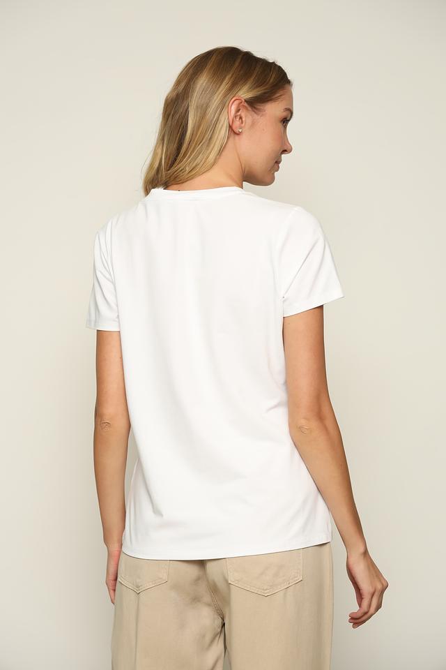 Благодаря своему лаконичному дизайну и нейтральному цвету, эта футболка легко сочетается с джинсами, брюками, юбками и другими элементами одежды. Она идеально подходит для создания повседневных, casual и даже более элегантных образов.