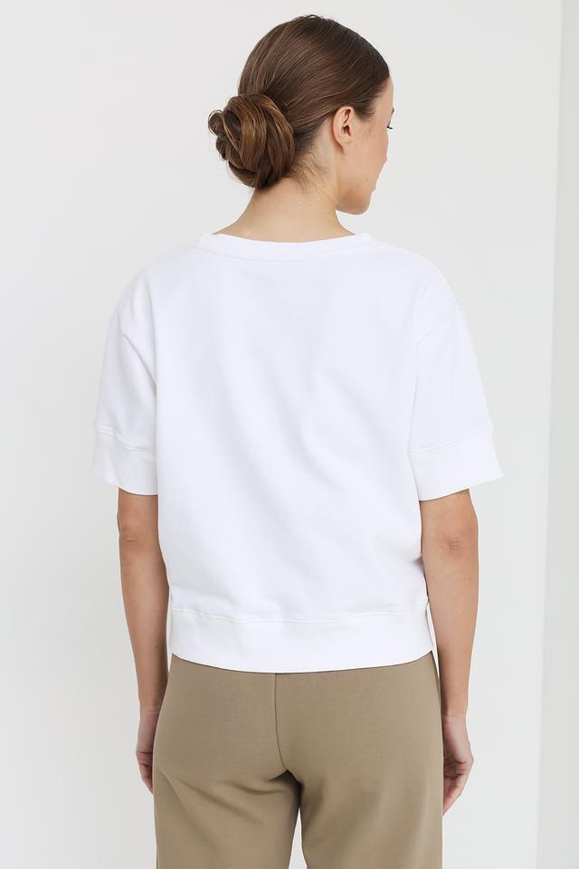 Пуловер имеет свободный крой и короткие рукава, что делает его идеальным для создания повседневных образов. Он прекрасно сочетается с джинсами, брюками или юбками.