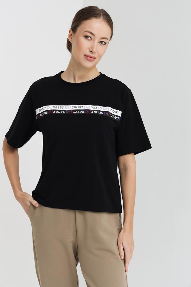 Чёрная футболка Pezzo с ярким принтом логотипа – стильный выбор для повседневного образа. Изготовлена из мягкого хлопка с добавлением эластана для комфорта и свободы движений. Состав: хлопок 95%, эластан 5%