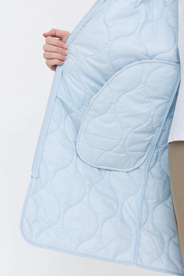 Стеганое пальто от бренда Pezzo станет отличным дополнением к вашему гардеробу. Пальто выполнено в нежном голубом цвете, который легко сочетается с различными оттенками одежды.