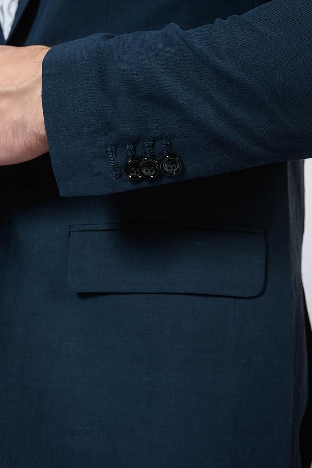 Изготовленный из смеси вискозы (65%) и льна (35%), пиджак обладает приятной текстурой и обеспечивает хорошую воздухопроницаемость. Материал лёгок и комфортен в носке, что делает этот пиджак идеальным выбором для тёплого времени года. Отличительной особенностью является текстурированная поверхность ткани.