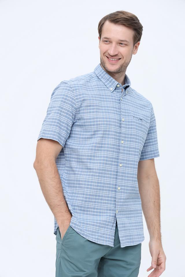 Мужская рубашка Pierre Cardin голубого цвета с коротким рукавом, выполнена в классическом клетчатом дизайне. Изготовлена из высококачественного хлопка с добавлением эластана для комфорта и удобства. Состав: хлопок 98%, эластан 2%