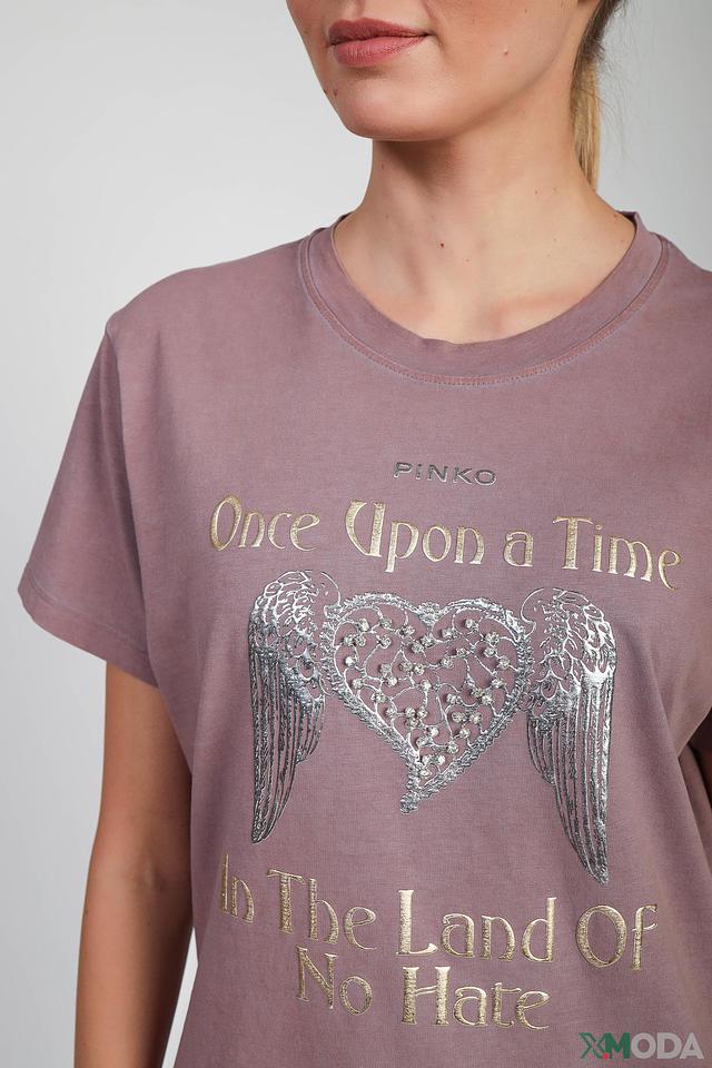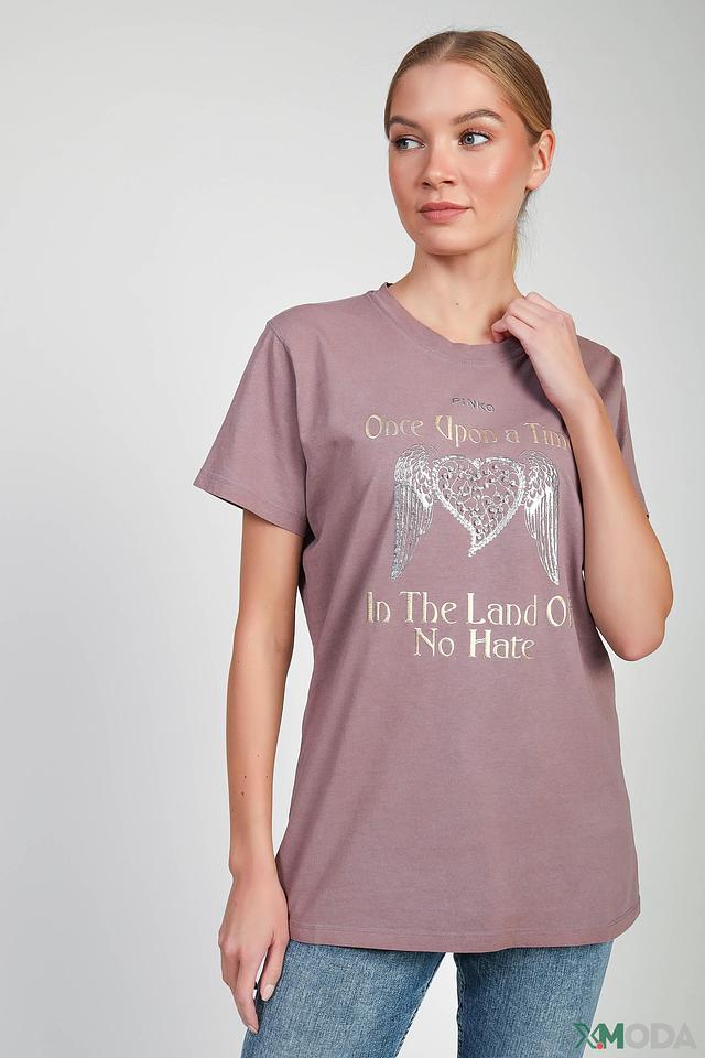 Женская футболка Pinko пыльно-розового цвета с оригинальным принтом в виде сердца и крыльев. Изготовлена из 100% хлопка, обеспечивая комфорт и воздухопроницаемость. Состав: хлопок 100%