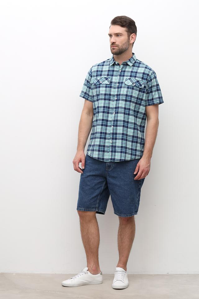 Мужская рубашка Pioneer с коротким рукавом выполнена в классической клетке сине-зелёных оттенков. Изготовлена из 100% хлопка, обеспечивающего комфорт и воздухопроницаемость. Состав: хлопок 100%