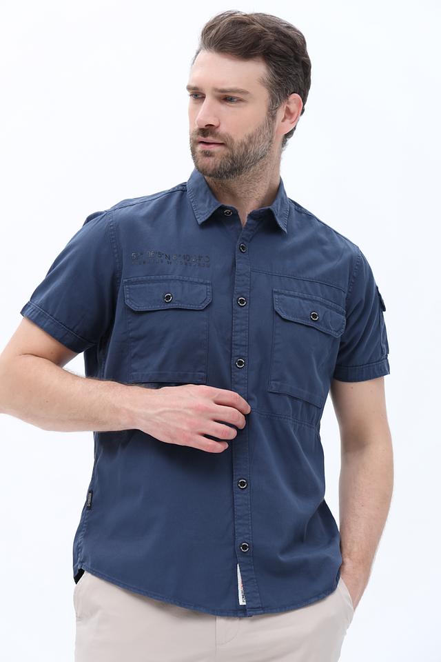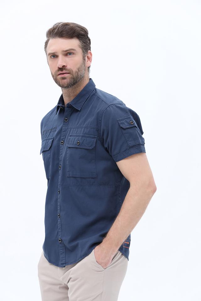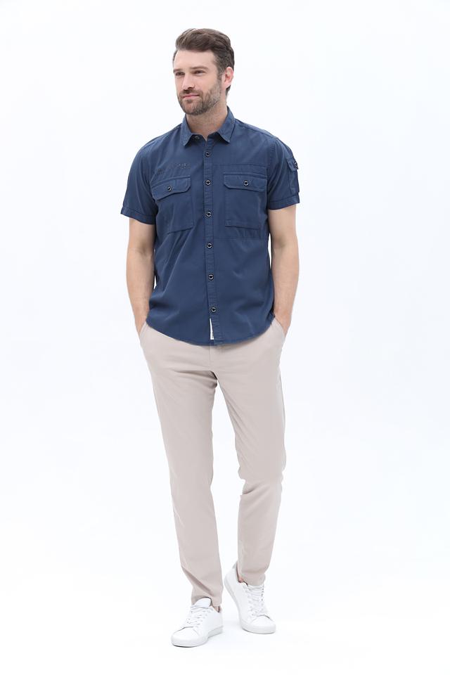 Мужская рубашка Pioneer синего цвета с коротким рукавом – это стильное и удобное решение для повседневной носки. Изготовлена из 100% хлопка, обеспечивающего комфорт и воздухопроницаемость. Рубашка имеет два накладных кармана на груди и декоративную отделку. Состав: хлопок 100%
