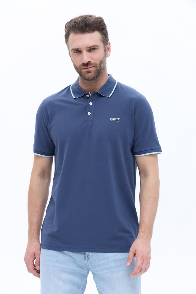 Мужское поло Pioneer синего цвета с контрастной светло-голубой отделкой на воротнике и рукавах. Классический крой и 100% хлопковый состав обеспечивают комфорт и удобство в носке. Состав: хлопок 100%