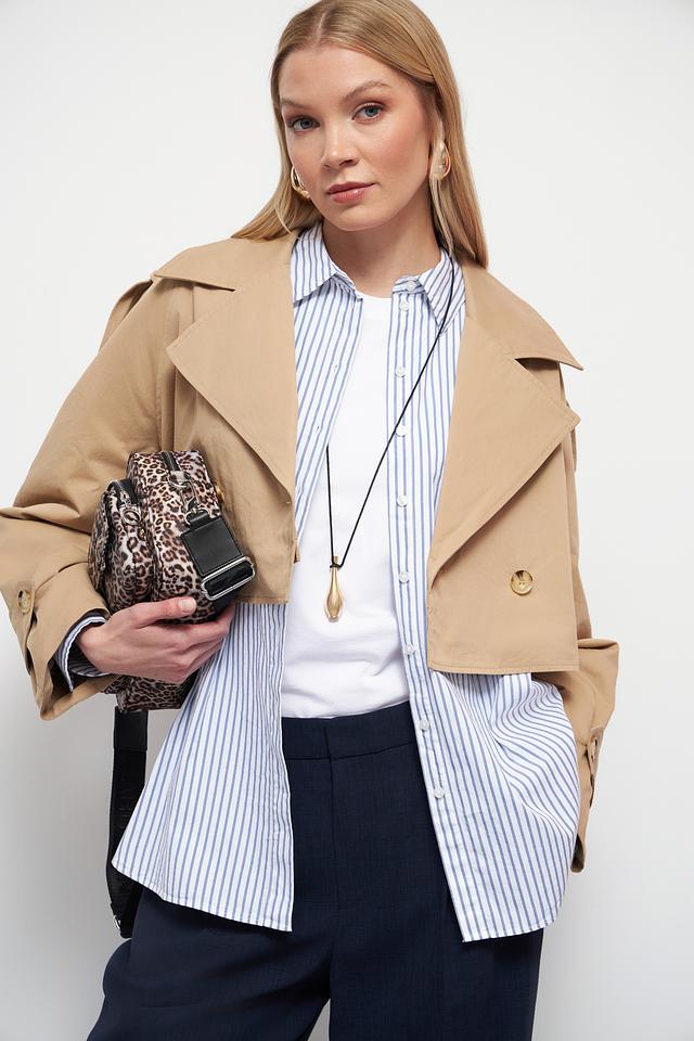 Классический тренчкот отличается прямым кроем, который подходит для любой фигуры. Двубортная застёжка с пуговицами добавляет образу строгости и изысканности. Широкий отложной воротник и погоны на плечах подчеркивают стиль и внимание к деталям.
