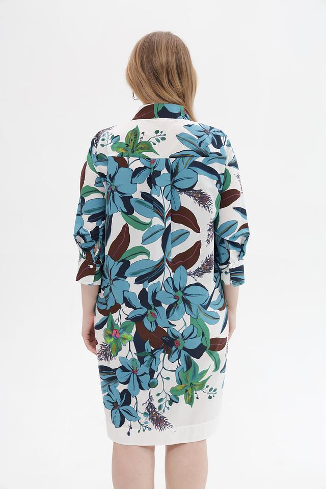 Платье рубашка от Luisa Cerano белого цвета с ярким цветочным принтом. Модель выполнена из 100% хлопка, обеспечивающего комфорт и воздухопроницаемость. Состав: хлопок 100%