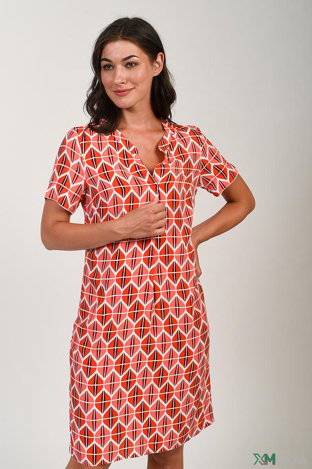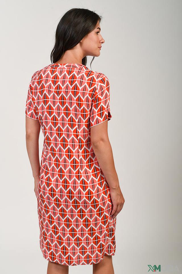 Это платье от бренда Bianca станет прекрасным дополнением вашего гардероба. Выполнено в ярких оранжевых тонах с геометрическим принтом, который придает образу оригинальность и динамичность.