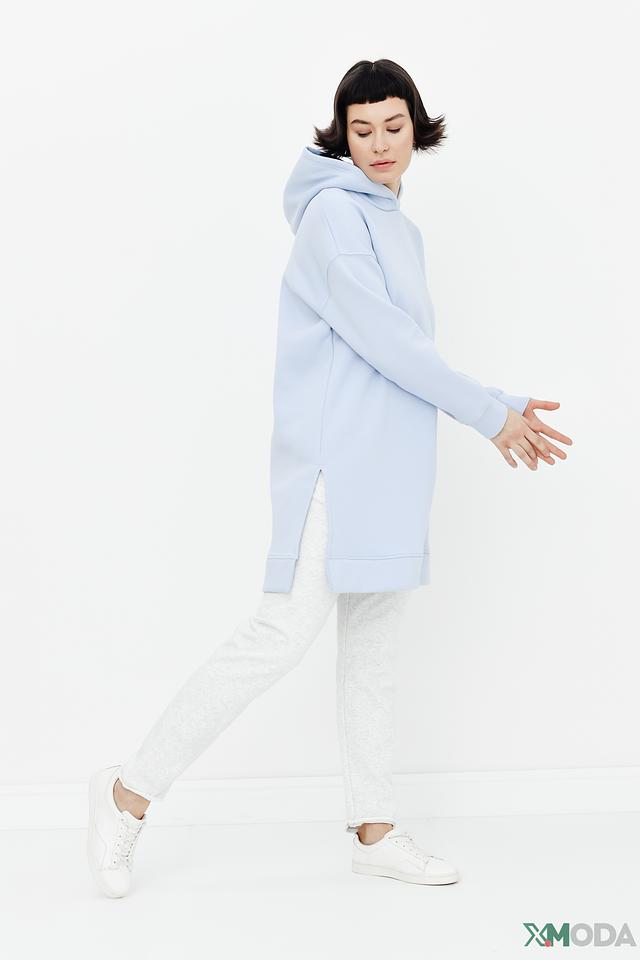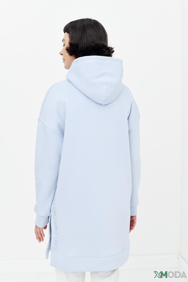 Платье-худи от Cinque нежного голубого цвета – это комфорт и стиль в одном изделии. Модель свободного кроя с капюшоном и боковыми разрезами идеально подходит для повседневной носки. Состав: хлопок 64%, полиэстер 36%