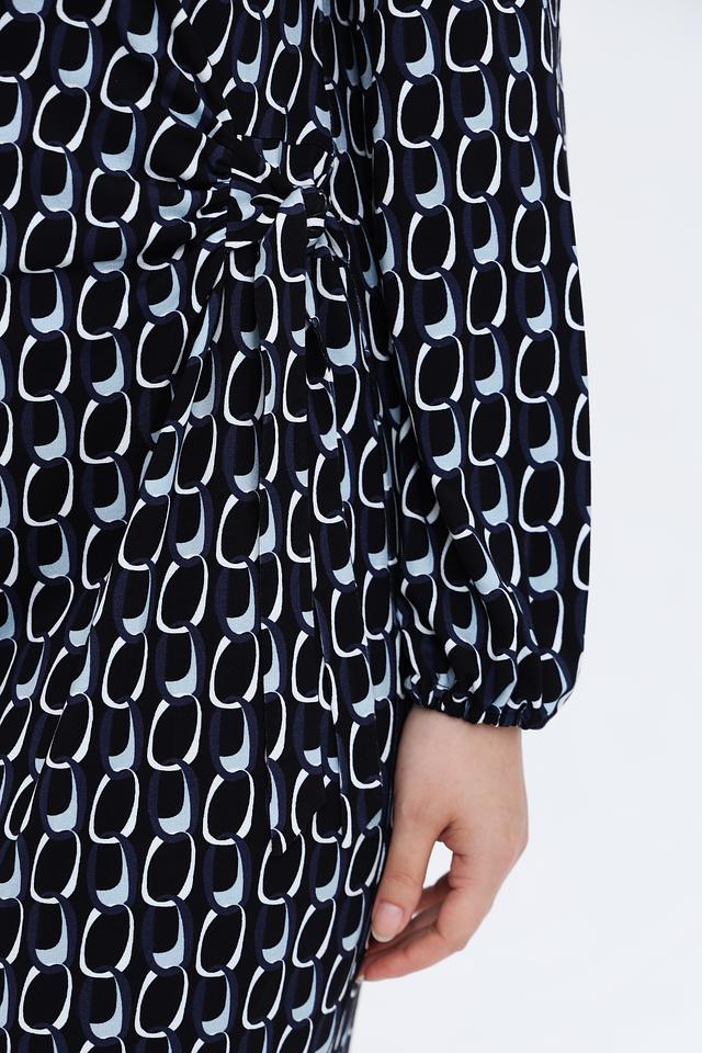 Это элегантное платье от бренда Erfo станет прекрасным дополнением к вашему гардеробу. Платье выполнено в чёрно-белой цветовой гамме и украшено стильным геометрическим принтом в виде повторяющихся овалов.