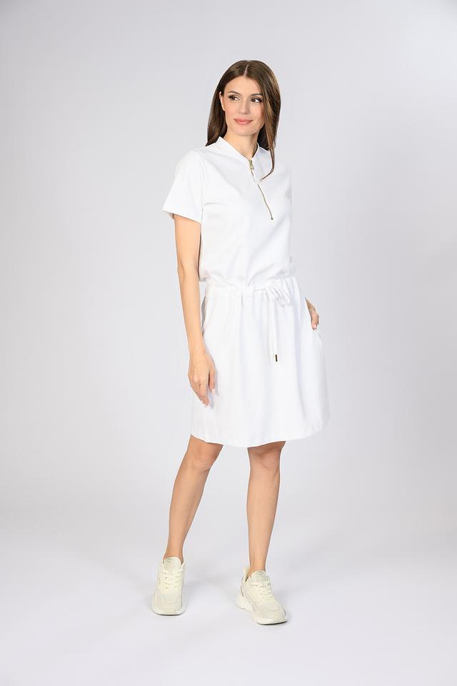 Белое платье от Joop! – это стильное и комфортное решение для повседневного образа. Модель выполнена из хлопка с добавлением эластана, имеет короткий рукав, воротник-стойку и застёжку-молнию. Платье дополнено кулиской на талии. Состав: хлопок 95%, эластан 5%