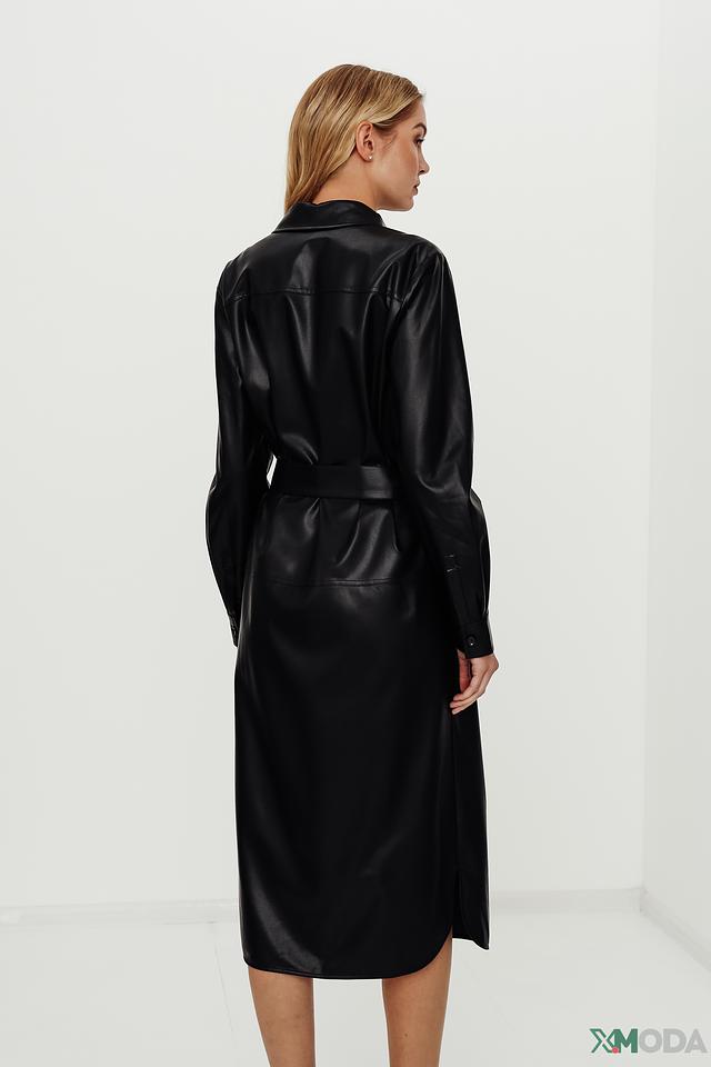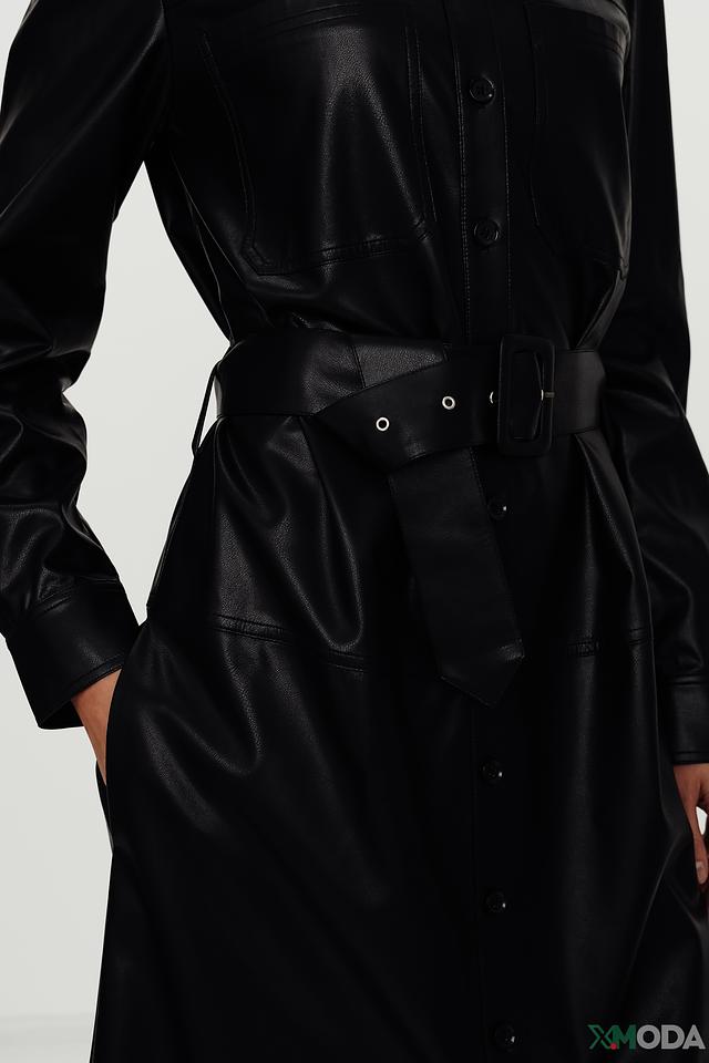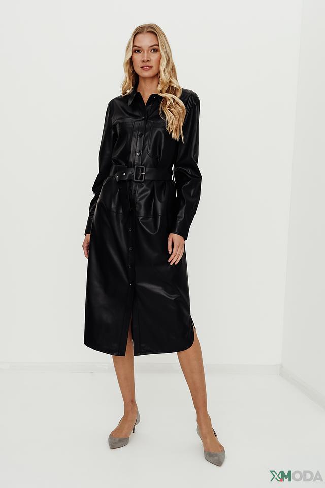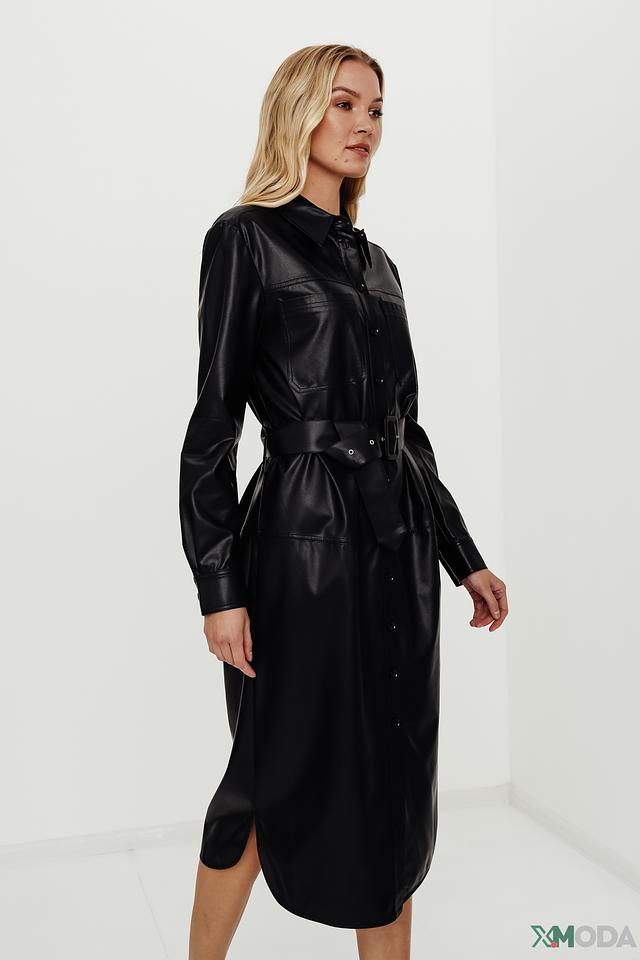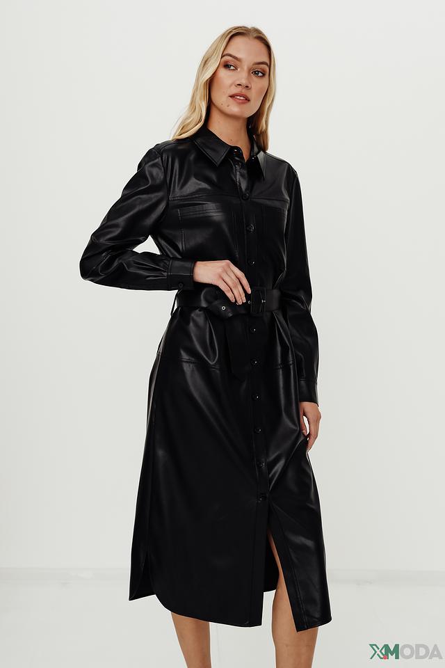 Чёрное платье Marc Aurel из экокожи – стильный и эффектный выбор для создания современного образа. Платье рубашечного кроя с поясом подчеркнёт талию и создаст женственный силуэт. Состав: вискоза 100%