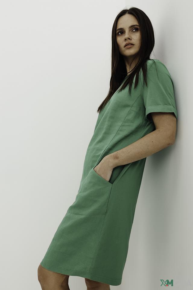 Платье от Oui зеленого цвета выполнено из 100% льна. Это свободное платье с короткими рукавами и боковыми карманами станет отличным выбором для летнего гардероба. Состав: лен 100%