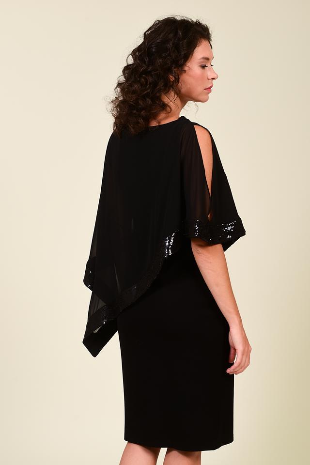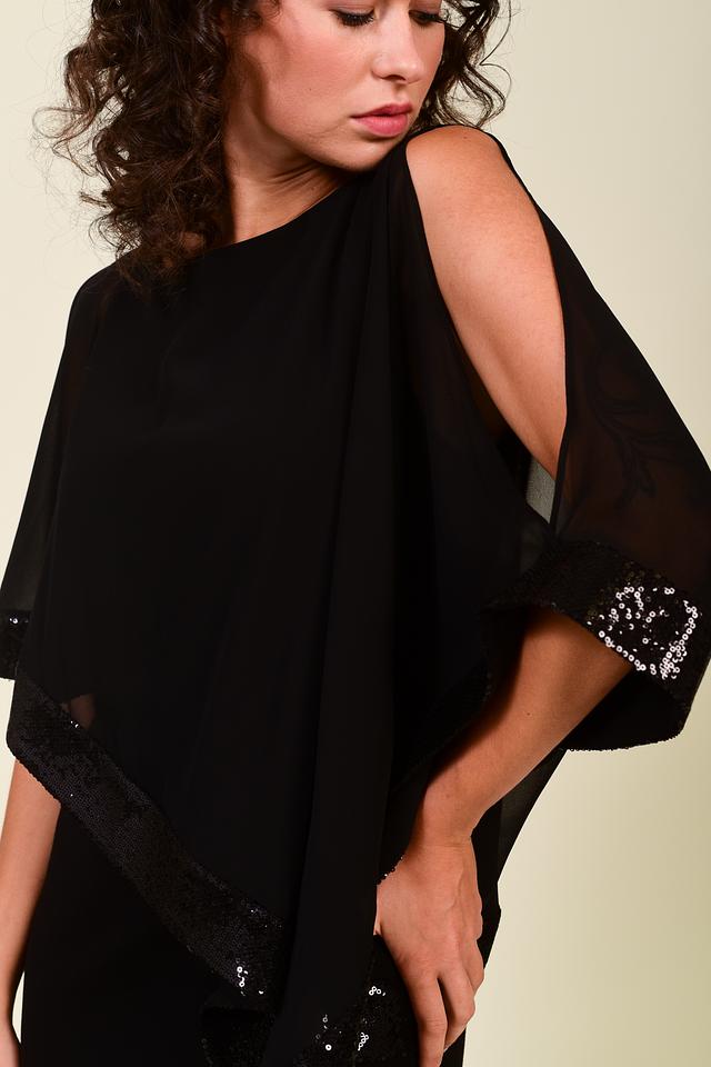 Чёрное платье Pezzo с асимметричной накидкой из полупрозрачной ткани. Элегантный силуэт и декор из пайеток делают это платье идеальным выбором для особых случаев. Состав: Состав_подкладка полиэстер 100%, Состав_2 полиэстер 100%, район 65%, нейлон 30%, эластан 5%