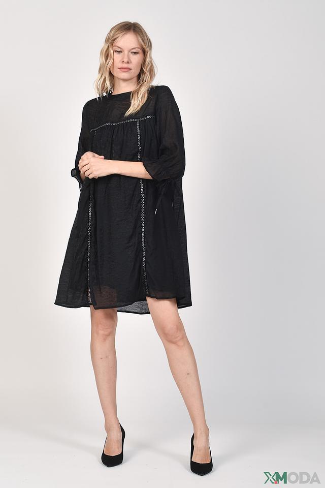 Чёрное платье от s.Oliver – это стильное и комфортное решение для повседневного образа. Модель выполнена из лёгкой ткани с фактурной поверхностью и украшена деликатной вышивкой по горловине. Состав: Состав_подкладка вискоза 100%, модал 60%, полиамид 40%
