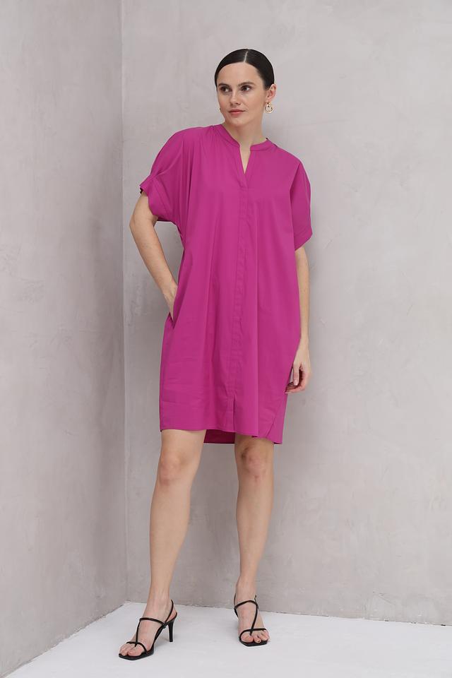 Это платье от Taifun выполнено в ярком цвете фуксия и станет отличным акцентом в вашем образе. Модель имеет прямой силуэт, который не сковывает движений и подходит для разных типов фигур.