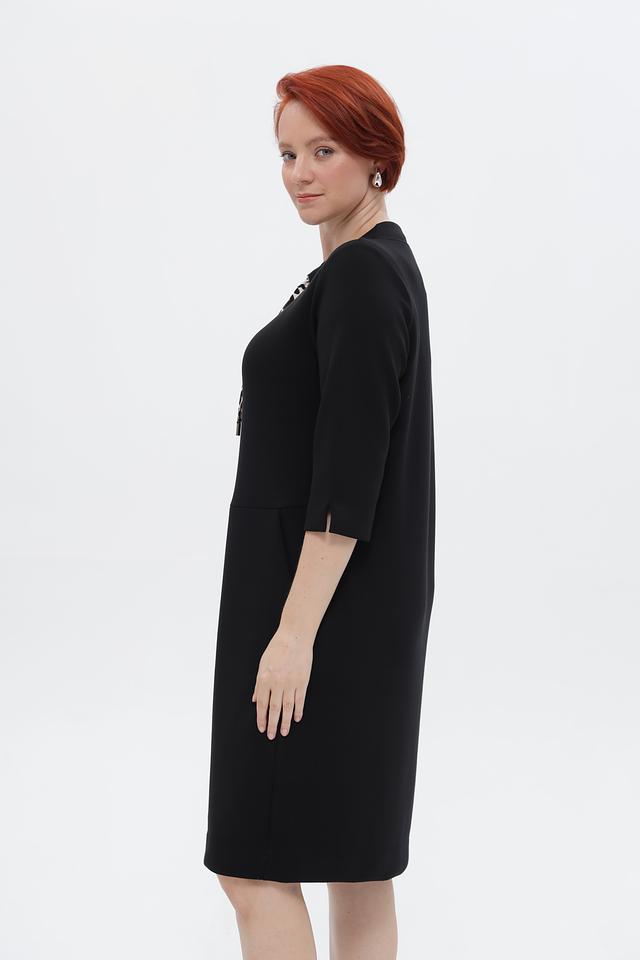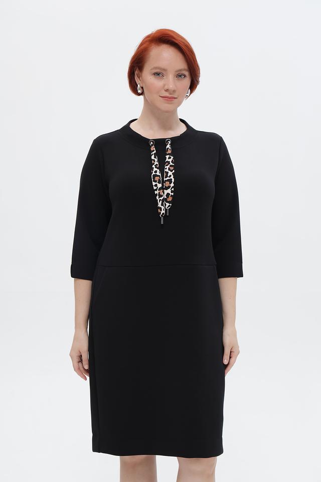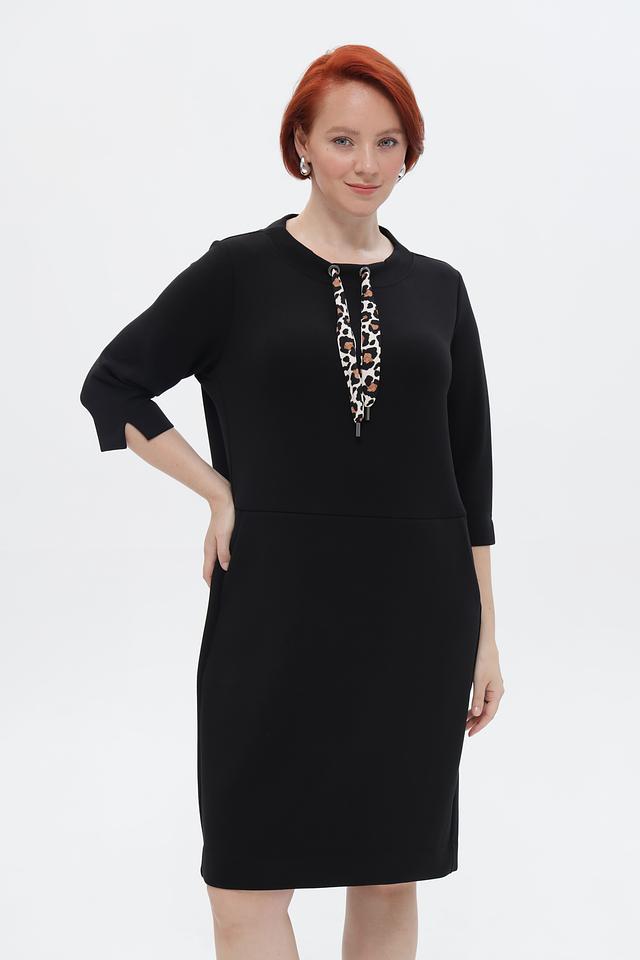Чёрное платье Via Appia – элегантная модель с оригинальным леопардовым декором. Изготовлено из вискозы с добавлением эластана и полиэстера, обеспечивающих комфорт и удобство в носке. Состав: вискоза 49%, полиэстер 43%, эластан 8%